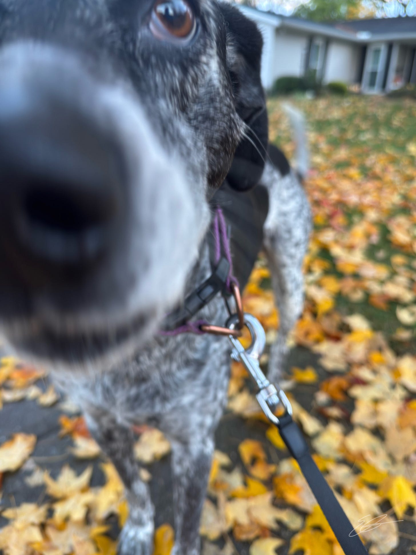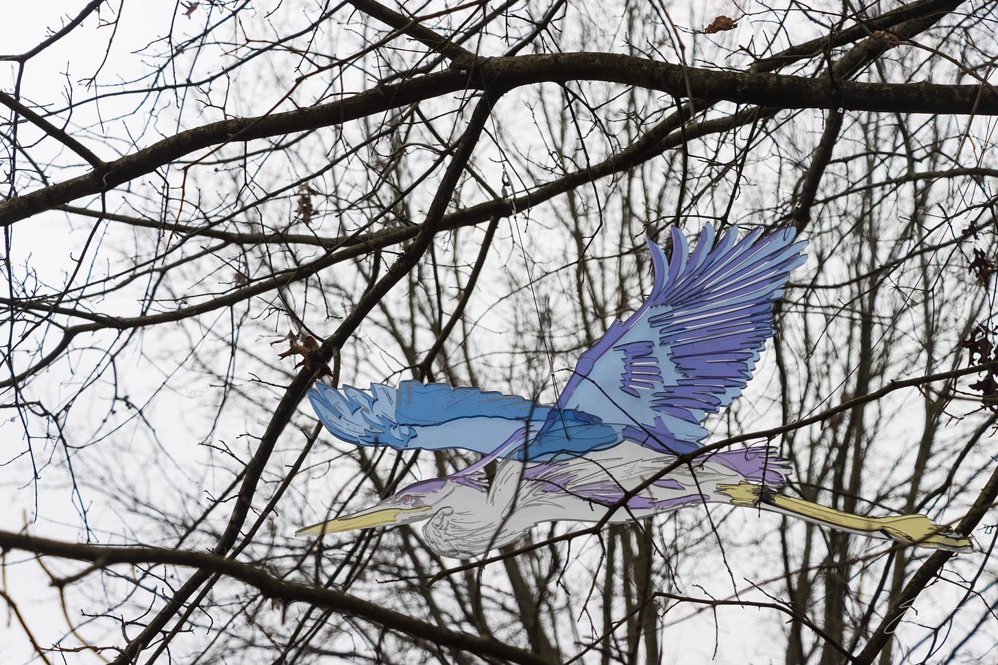 I know the rest of this is about Scout but I do want to take a moment to share a photo of the other animal that I have photographed a LOT this year. I haven’t seen herons at Winton Lake much over the last few weeks (they must have a nice warming hut somewhere) but I did see this beautiful art piece of a heron while out on a hike with Rowe Woods with Scout a few days ago. I didn’t see who created this piece so apologies for not crediting it. It is one of the many pieces that Cincy Nature has put up around Rowe over the last year with signs before you see them simply saying, “Look Up.” For scale, it is about 2-3’ long. Isn’t it lovely?
