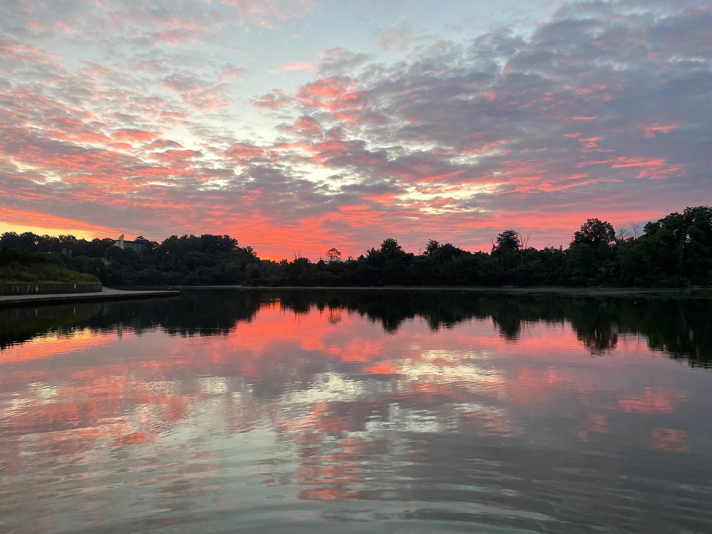 Even though I grew up in the mountains, I (as anyone who has seen my photos can attest) have a thing for water and reflections. Now, put me somewhere with a mountain lake and I’m just about in heaven. But given that we don’t have mountains around here in SW Ohio, I’ll settle for the lakes and ponds that we do have. Anyway...yesterday morning this was the sunrise that began my day. It was just stunning but made even more so (for me at least) by the still waters that reflected the glorious sky. It isn’t a perfect reflection but it is pretty close.