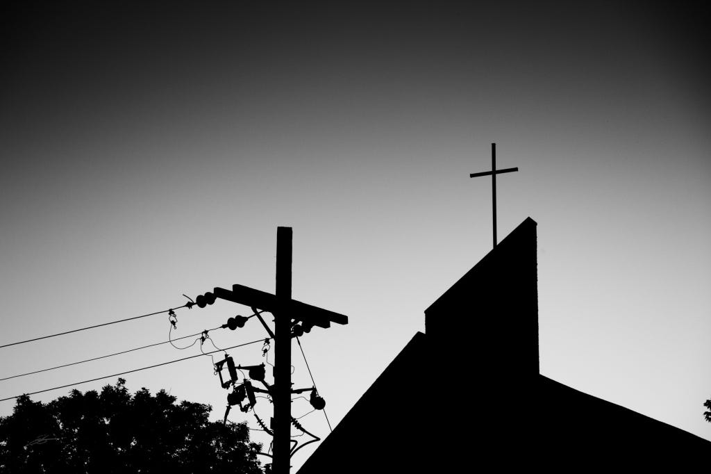 I have walked past this church probably 100s of times. It is across the street from a lake around which I often take my morning walk. This morning, a contrast caught my attention. The cross at the top of the church building rising up above everything else and then the cross in the utility pole connected to wires stretching out into the street. (Disclaimer - this is in no way a commentary on that specific congregation). What stirred in me was the connection. One of the crosses was clean and crisp and unconnected. The other was rough but connected to the community around.