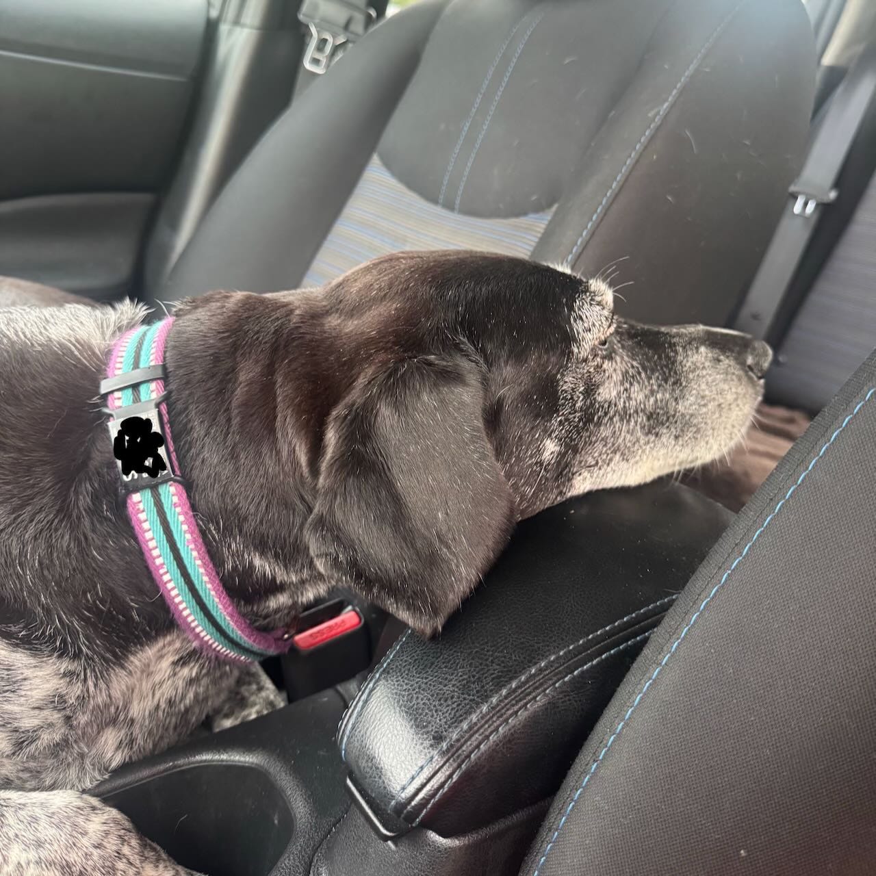 PS - Here was Scout in the car as we headed home after this moment with the heron...