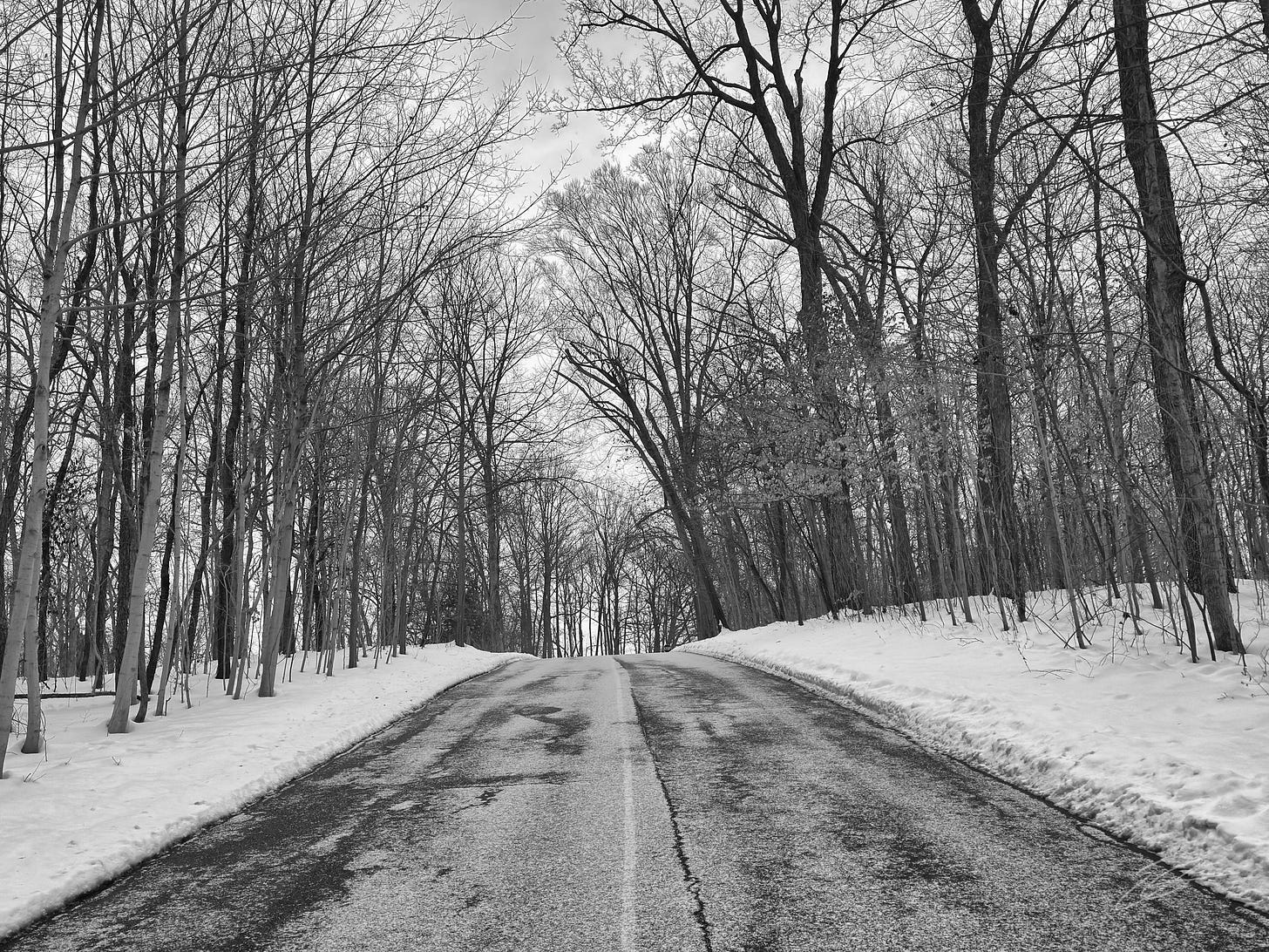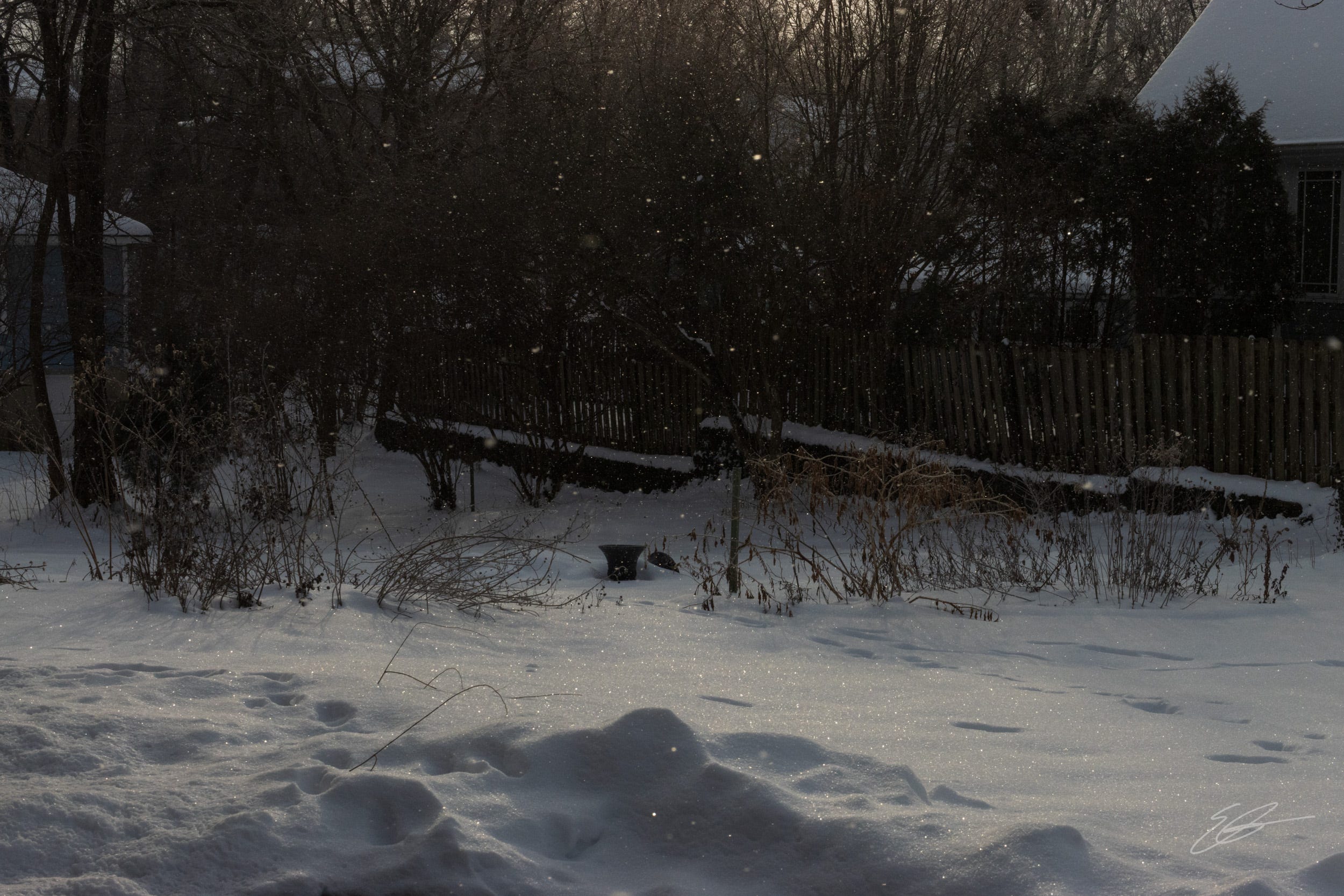 When I was driving on 471 on Thursday morning it looked like a black and white movie scene except for the green exit signs. Great pictures but I am so glad to see the snow go.