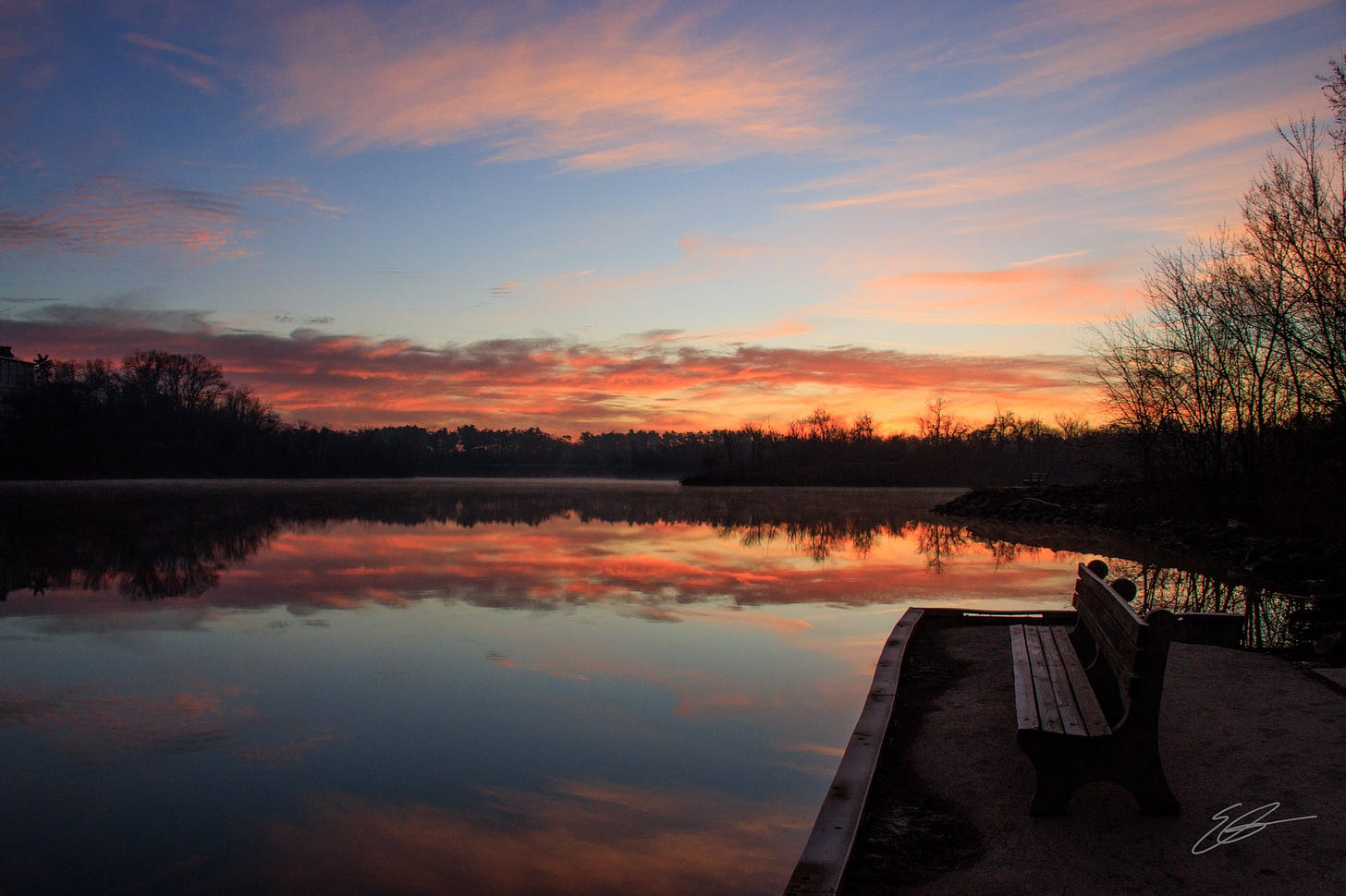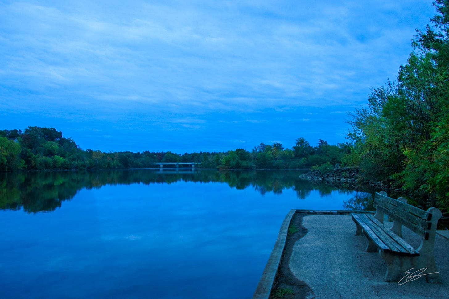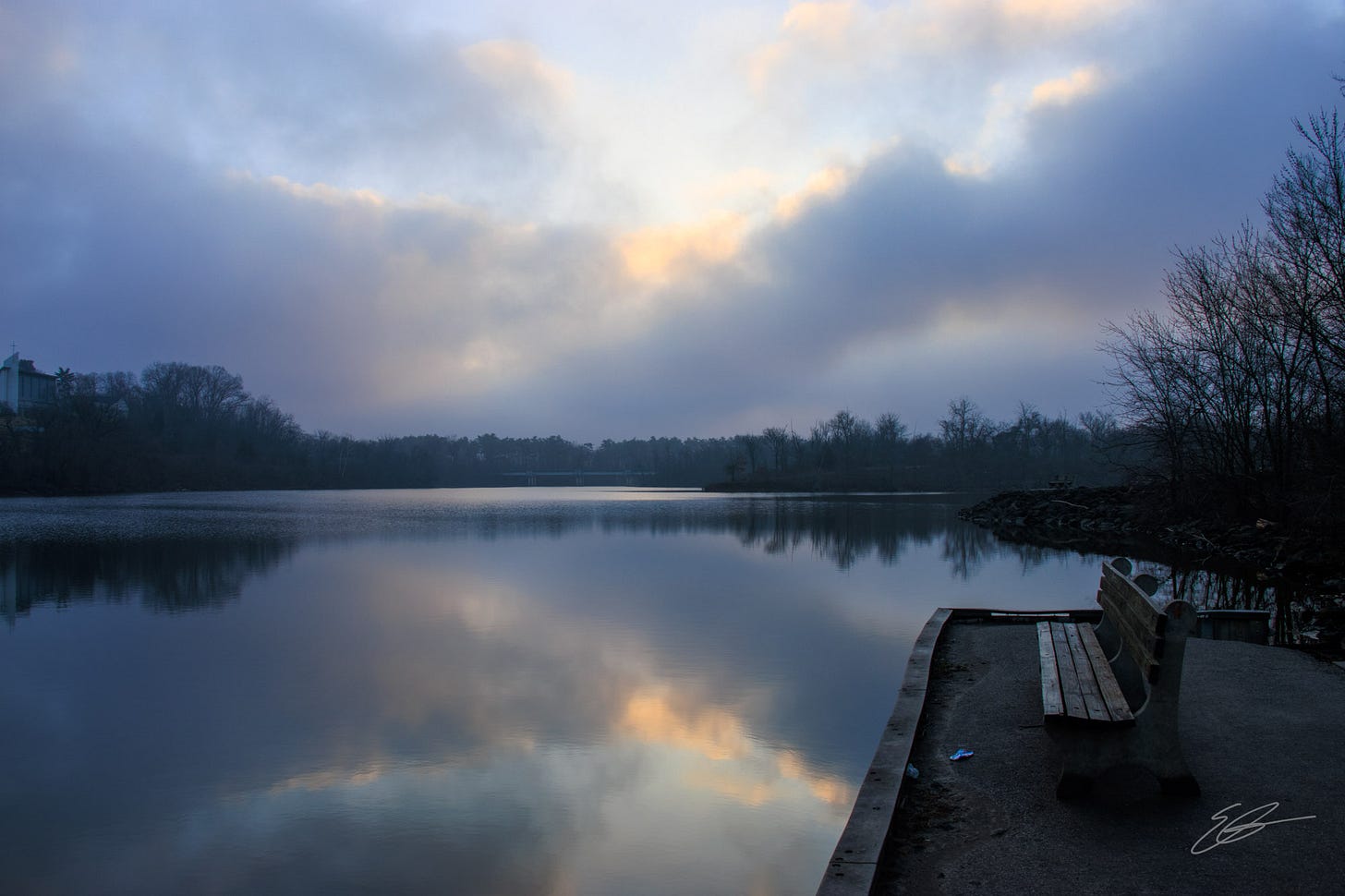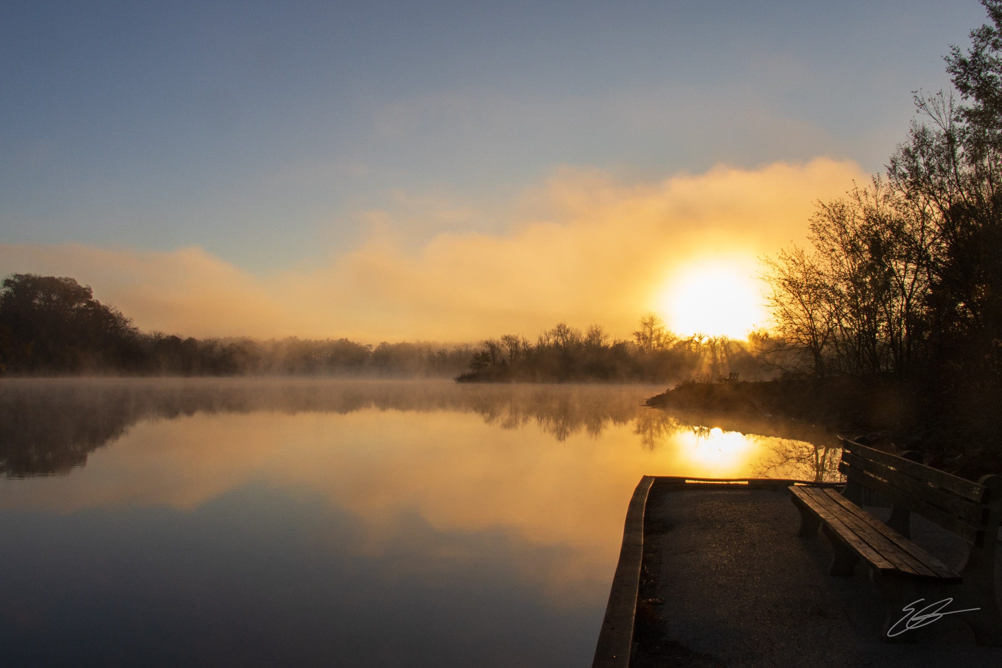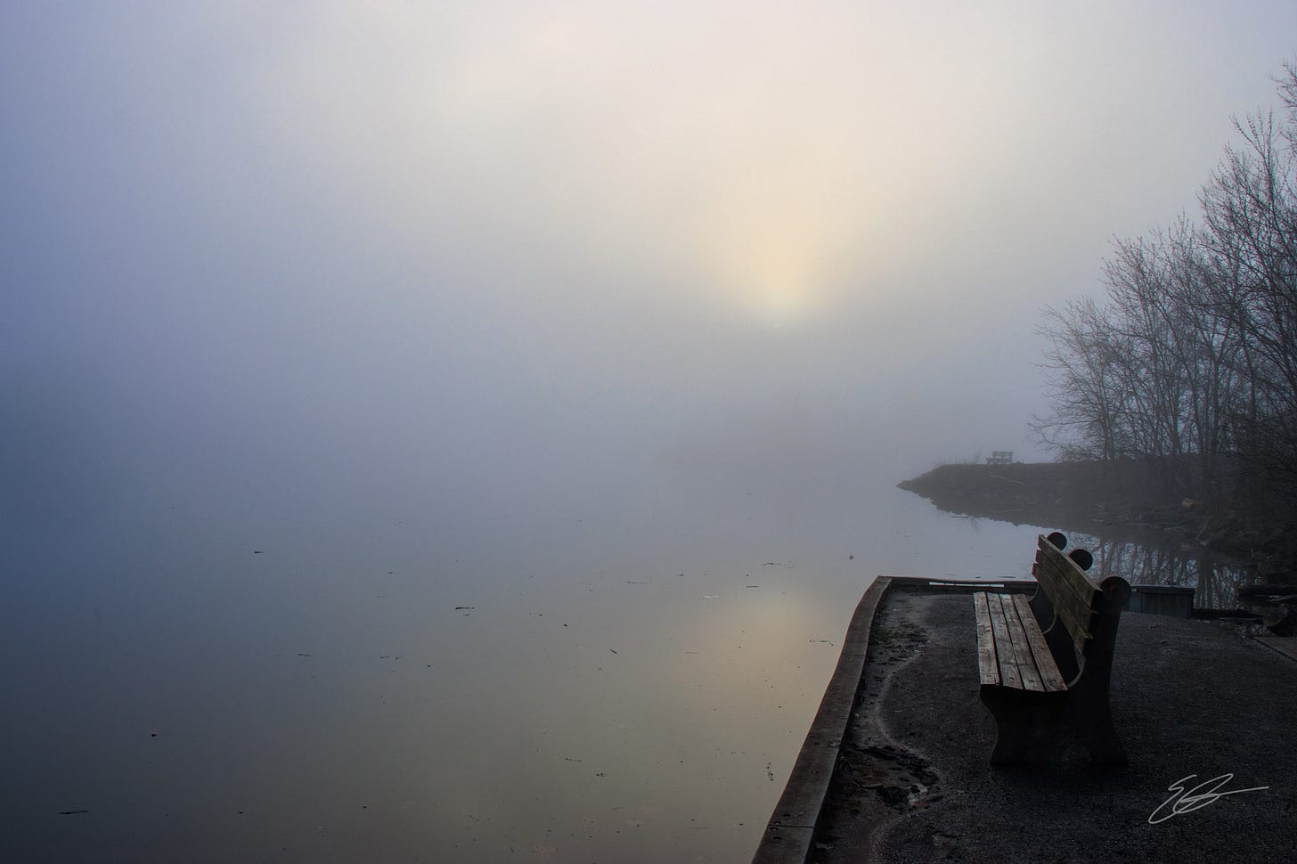 Last year, I had an idea of photographing one of the benches at Winton Lake (not this one actually) at 7:45am each time I went to the lake. I started with that bench and then started to gractiate toward a different one - this one pictured here (and also further below). I tried to frame it the same each time with the idea of seeing what the space looked like at (roughly) the same time each day. I didn’t know what I would do with these photos until later in the year when reflections started to emerge for me and I began to write what ended up becoming my self-published book, Ordinary Benchmarks.