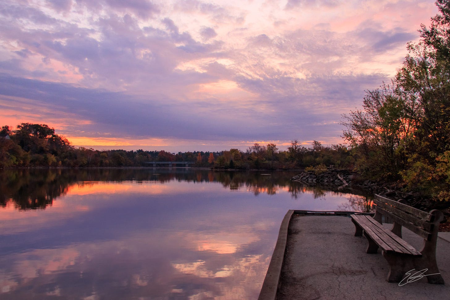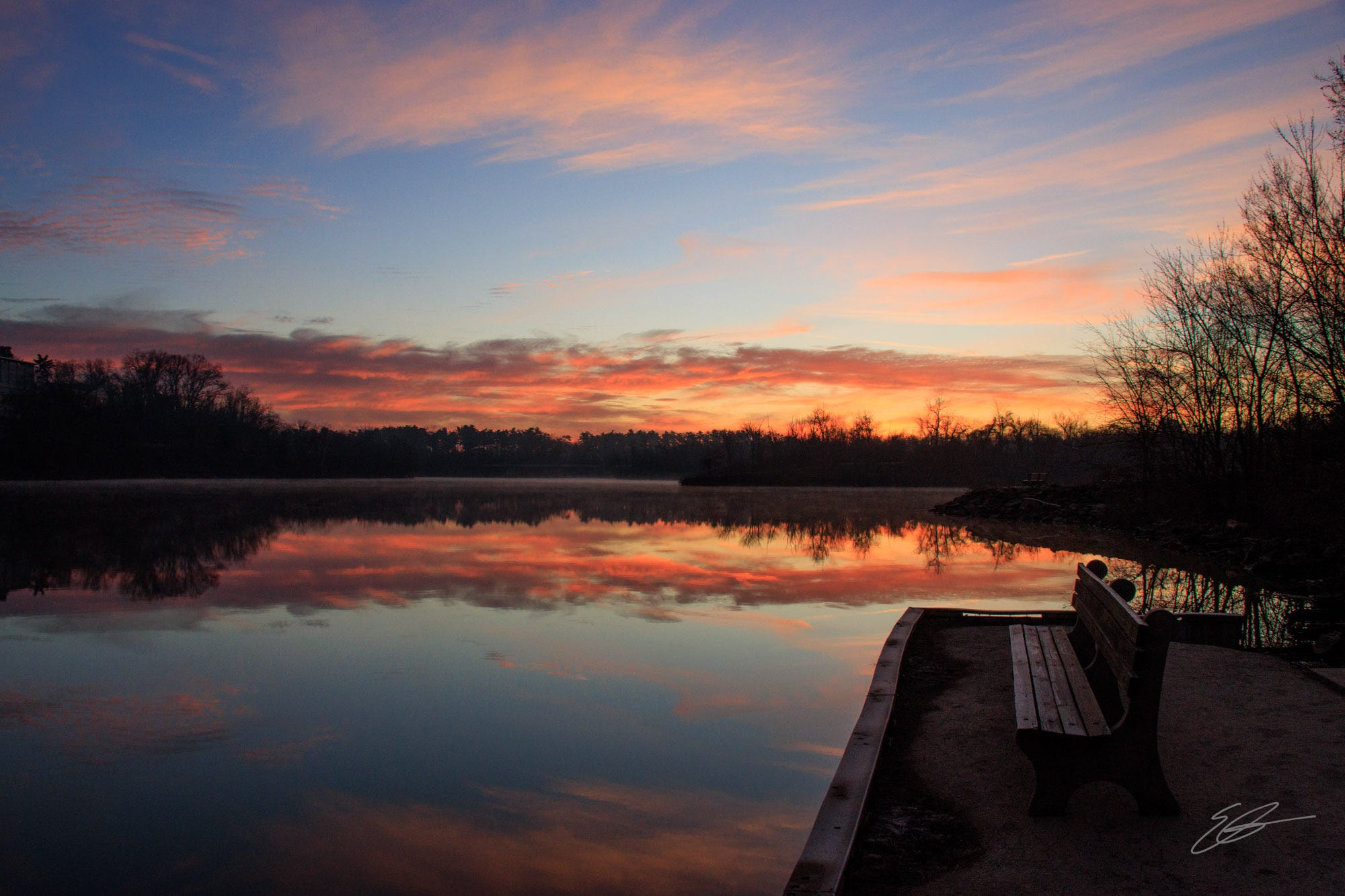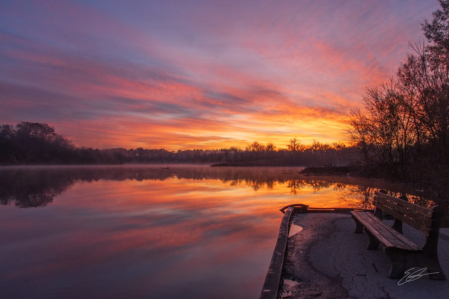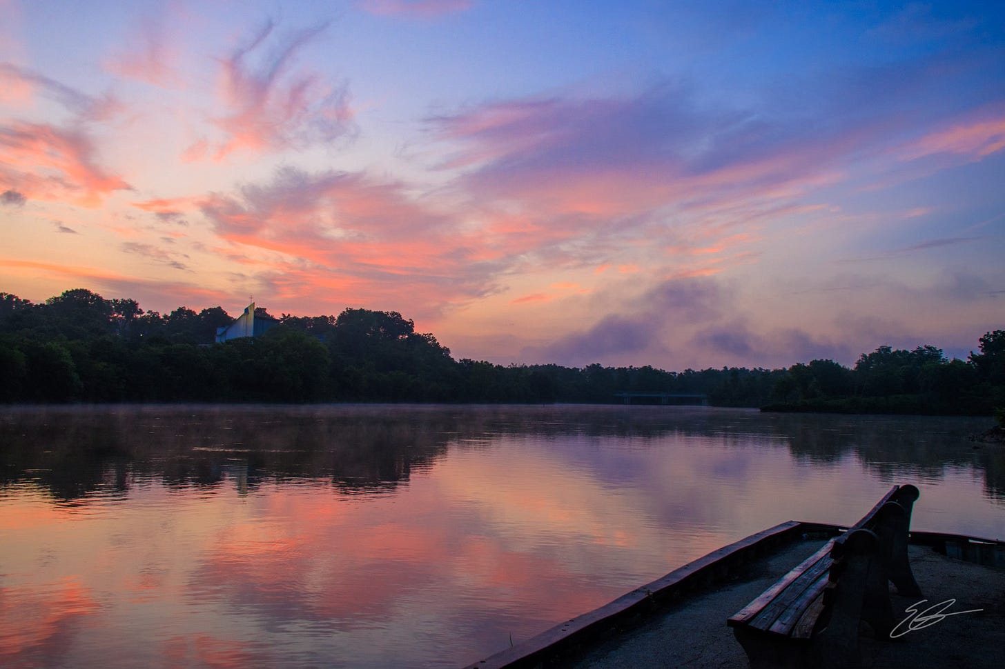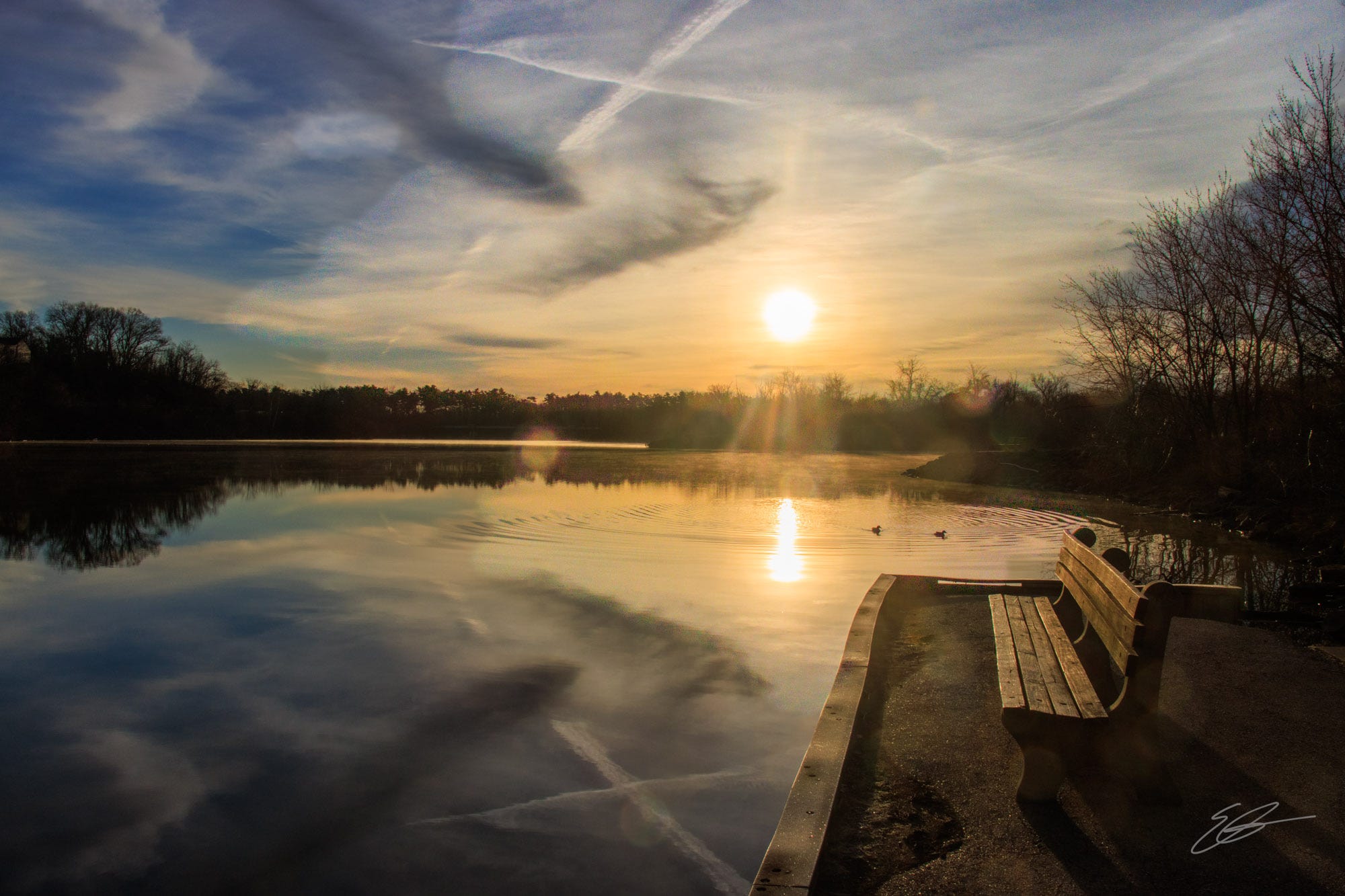 Last year, I had an idea of photographing one of the benches at Winton Lake (not this one actually) at 7:45am each time I went to the lake. I started with that bench and then started to gractiate toward a different one - this one pictured here (and also further below). I tried to frame it the same each time with the idea of seeing what the space looked like at (roughly) the same time each day. I didn’t know what I would do with these photos until later in the year when reflections started to emerge for me and I began to write what ended up becoming my self-published book, Ordinary Benchmarks.