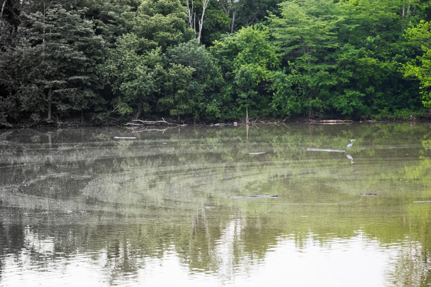 It took just the right light as we were walking to see the rings that had formed on the lake (along with whatever it is made of - algae, dirt, pond scum, etc). It also took attentiveness on my part to be looking for something like this and then it took a bit more work to get it to be seen in the photograph.