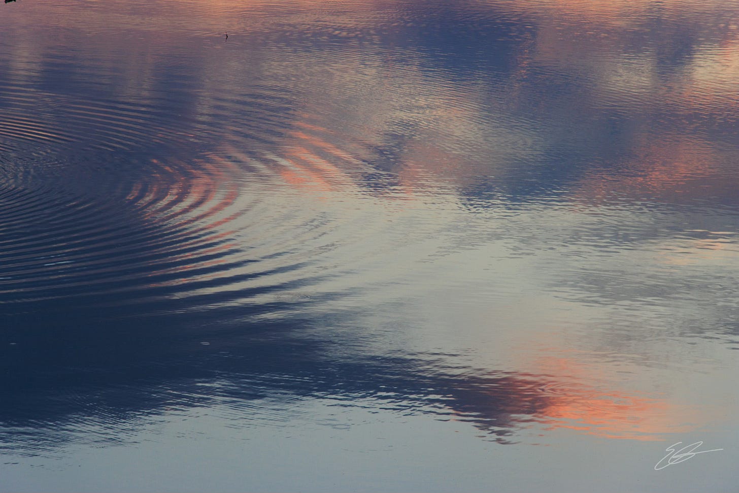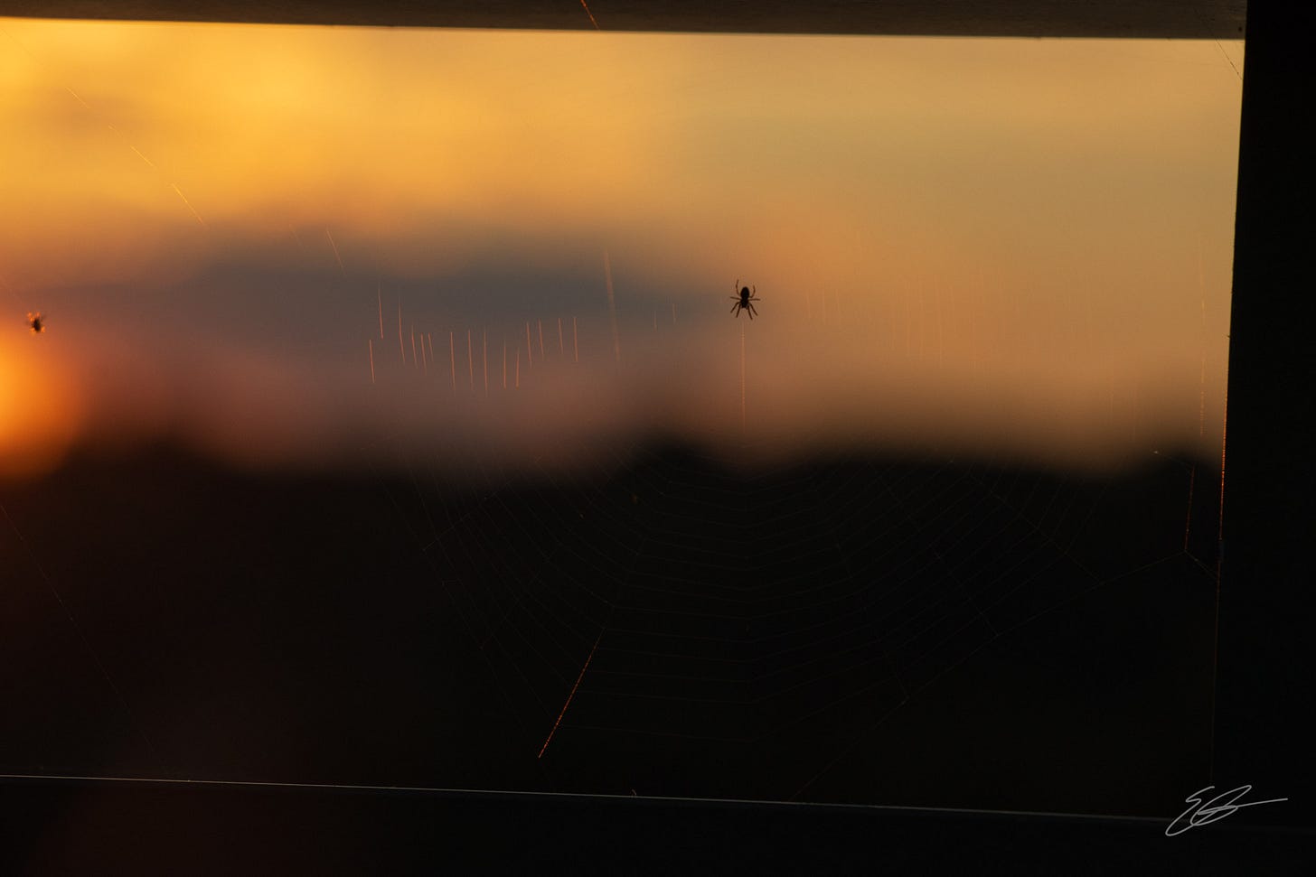 ’s and David Wilcox’s music while Scout and I walked on a perfect-temperature evening. We saw some beautiful ripples in the water and then a gorgeous and colorful sunset across the lake. Scout sat patiently most of the time I was photographing and she enjoyed getting lots of love and scratches from people walking by. I talked with another photographer who was out soaking in the same beauty of the evening. I also saw two planes fly overhead, either of which could have been carrying my wife on her flight based on the direction they were heading. Once the color had largely left the horizon, we headed back to the car and drove home. I ignored the dishes in the sink and popped in the memory card from my camera and here was some of what we saw from the ripples in the water to the breath of the sunset and the sun’s reflection on a spider web in between where the reflection looked almost like musical notes.And then a word about this last one. As we were a little ways from the car, I saw a crumple of yellow in the grass on the side of the path. I stopped to look and it was a bright flower bloom. I don’t know if someone picked it and then dropped it or how it got there but the petals were all scrunched together. I crouched down, picked it up, straightened the petals out, and placed it gently on top of the grasses with a simple prayer for someone else to see it and be blessed by the beauty of it. And I share it here with the same wish for you.