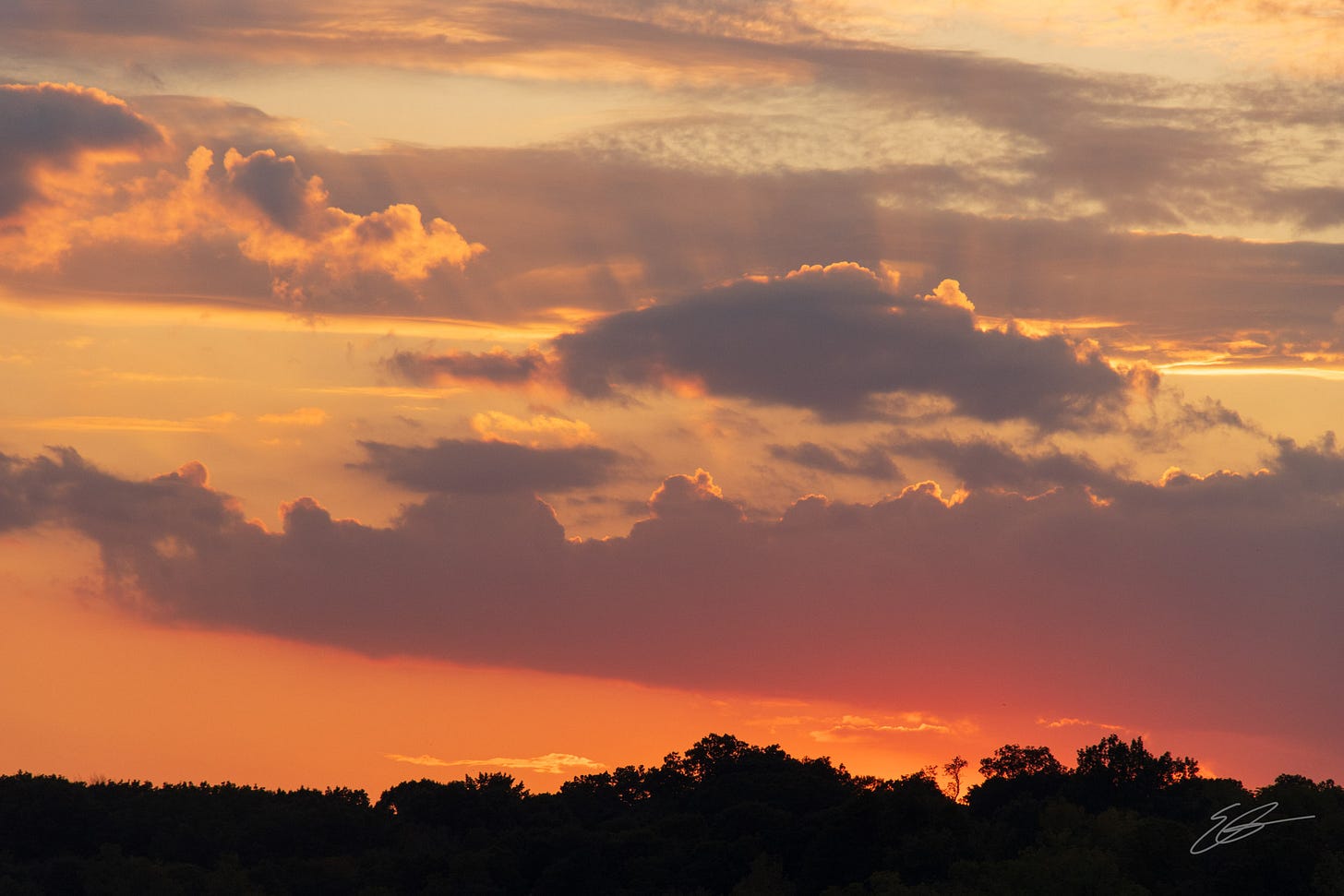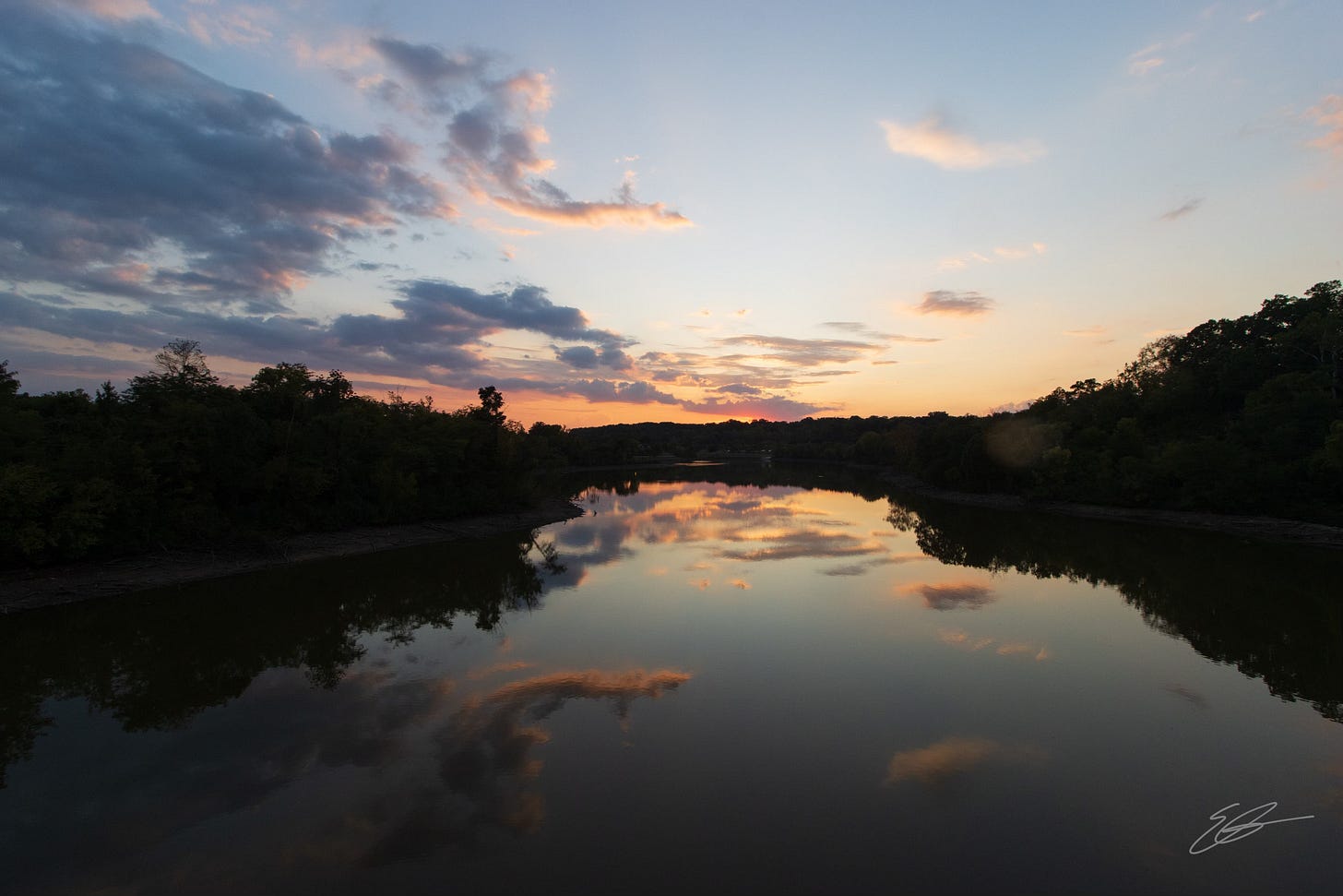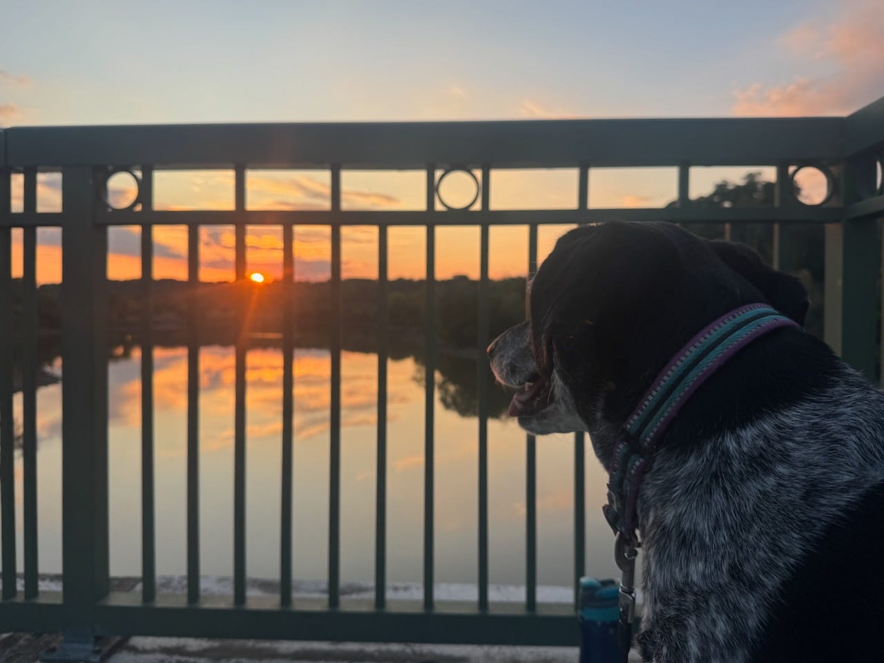 ’s most recent sermon and thought that would be soul-filling - and it was. It centered on the oft-quoted passage from Amos about “Let justice roll down like waters and righteousness like an ever-flowing stream.” She brought something up that I had never paid attention to - She centered on the “stream” and noting how a stream isn’t a torrent of water but often just the small, consistent, flowing movement of water. There’s more I could say about the passage but what it led me to was a recognition that, when I got home, I needed to get by some water and enter into some expansiveness.1 With everything of the day, I was tempted to just go into the basement with Scout and watch the most recent episode of Alien Earth but I knew I needed something different at that moment. So after a quick dinner, Scout and I headed out for a walk around sunset at the lake.It was expansive indeed as I listened to some of