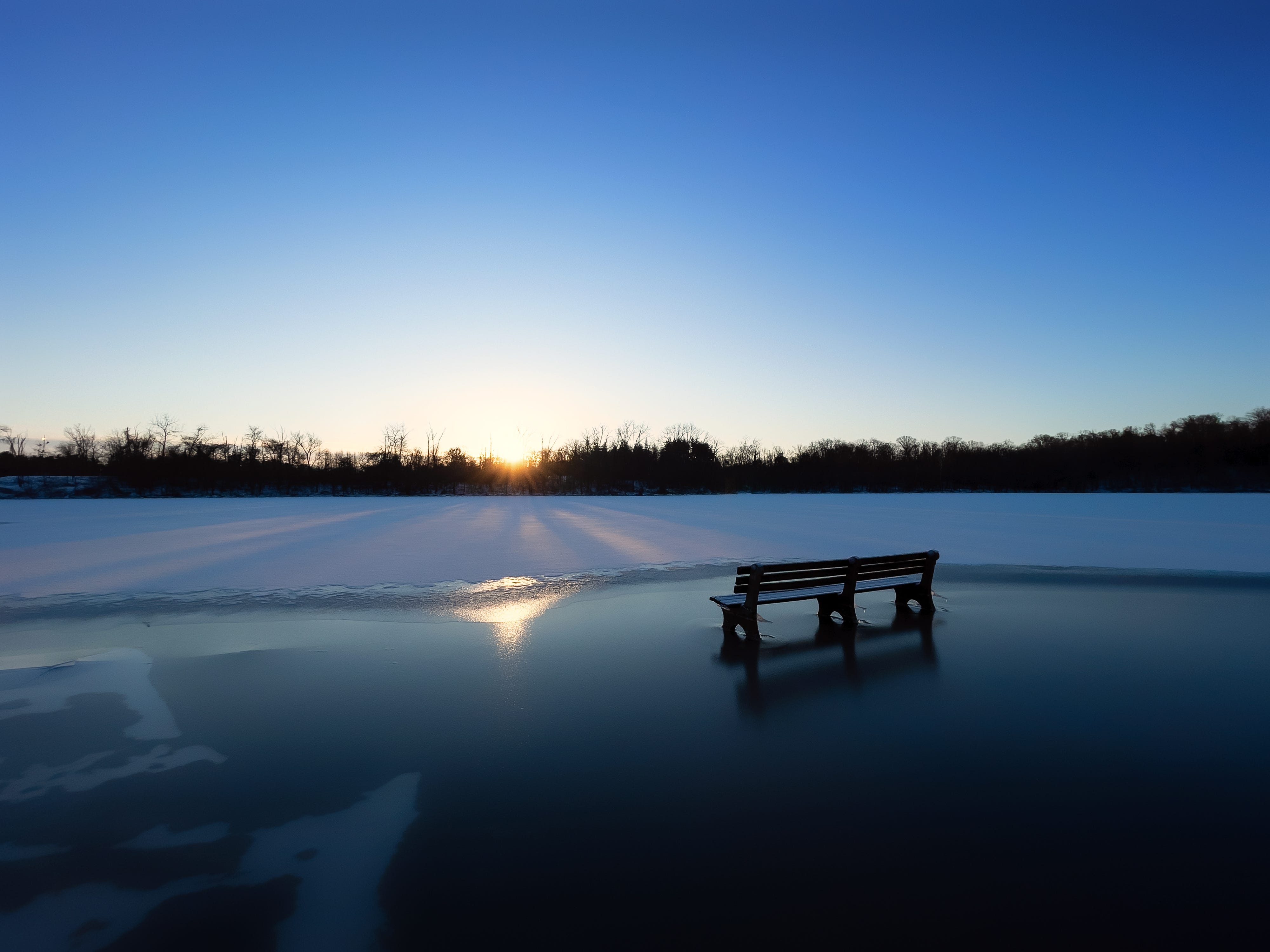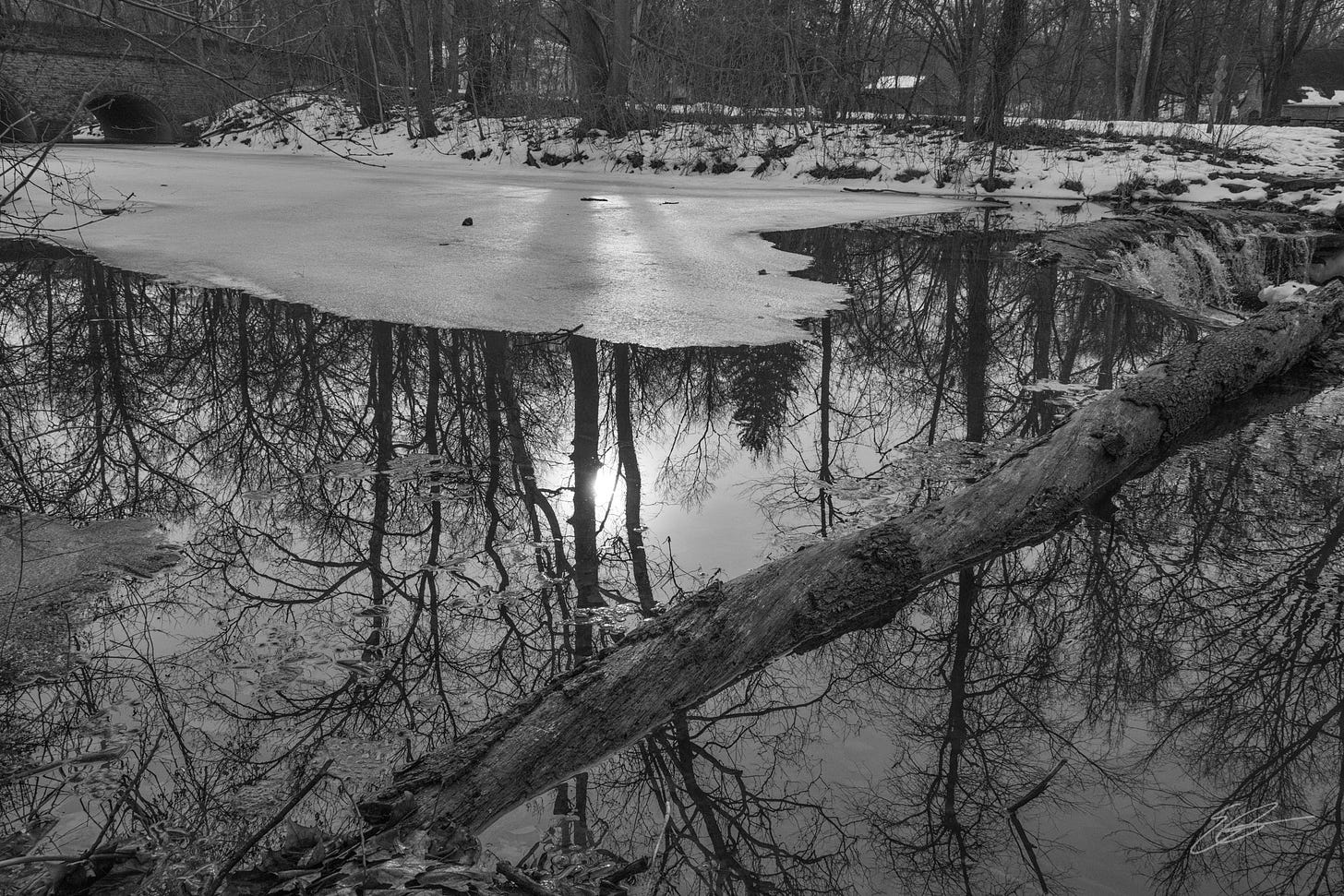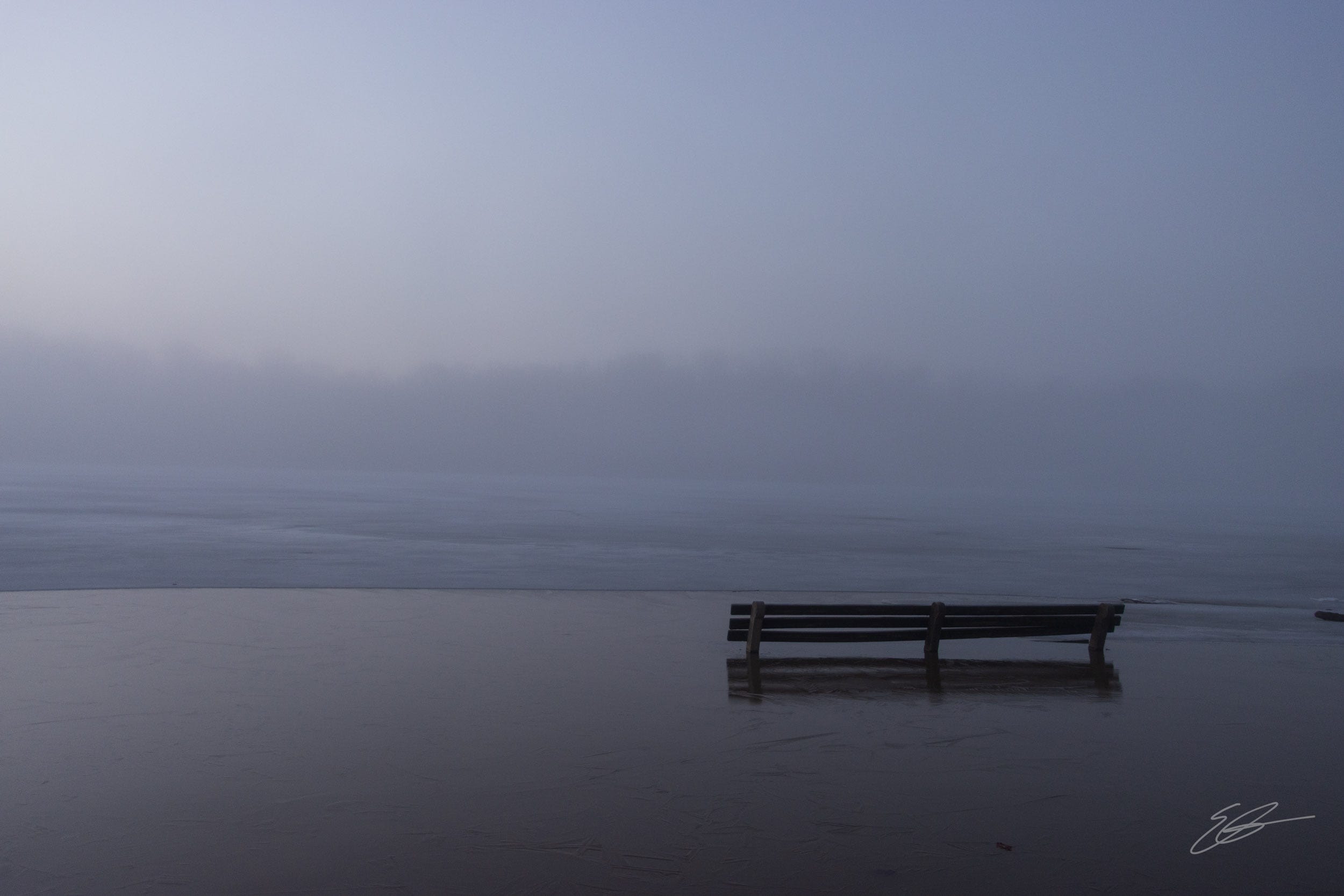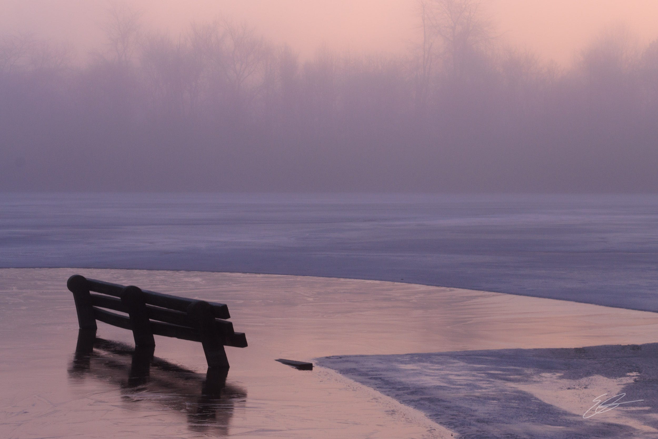 If you noticed something different about the bench in two of those photos, you see what I mean. One of “my benches” is broken and looks like it likely will not be coming back. As I was walking, I noticed that the seating portion of the bench had been broken off and the back looked like it had gotten somehow twisted. Maybe from one too many times being underwater, maybe from the ice and thaw, or maybe from some people who were messing around. Regardless, it is broken. I know it was just made of wood and stone but I have photographed this bench so many times and it has given me so many unique wonder-imbued moments. I hope Great Parks will put a new bench back there but still…I am grateful for all the moments that this bench gave. Here’s possibly my favorite of all my photos of it (from February of 2021)