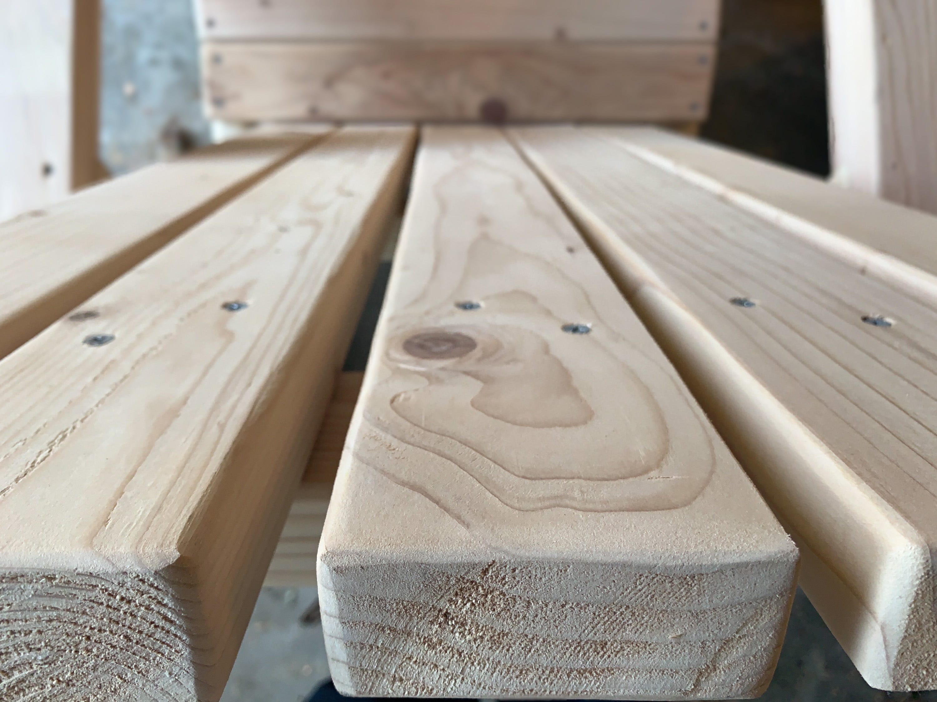This is a picture of an Adirondack chair that is sitting in our garage currently. The pieces have all been cut, sanded, and assembled into five chairs but we haven’t gotten to staining or sealing them yet, so in the garage they sit. They can be used (they’re pretty comfortable and are REALLY solid) but they aren’t ready to be left outside. They're getting there, but they’re unfinished. I can see the progress from when they were just a bunch of 2x4x8s to what they are now. But they're not fully finished yet.