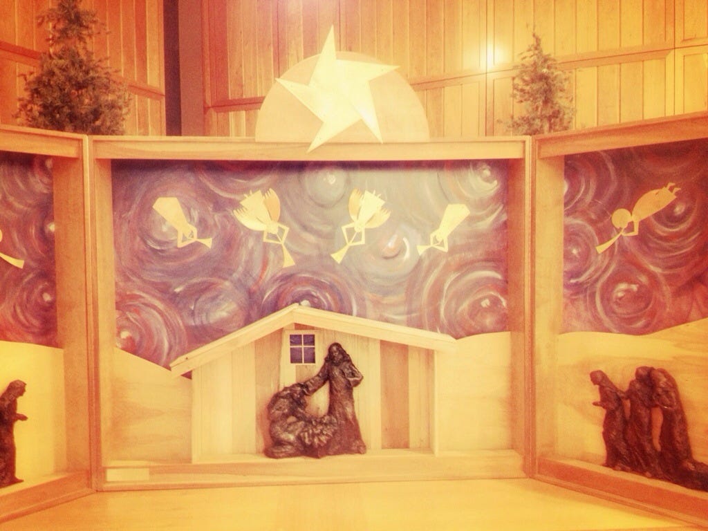 Observing Advent - Day 21 - Prophet This is the nativity displayed in the chapel at Cincinnati Childrens Hospital. I was very moved by the artistry of the image. I reflect upon the story we celebrate this season as the words of the prophets are fulfilled. Angels pronounce the long-prophecied Messiah to shepherds in a field. Yes, come Lord Jesus.