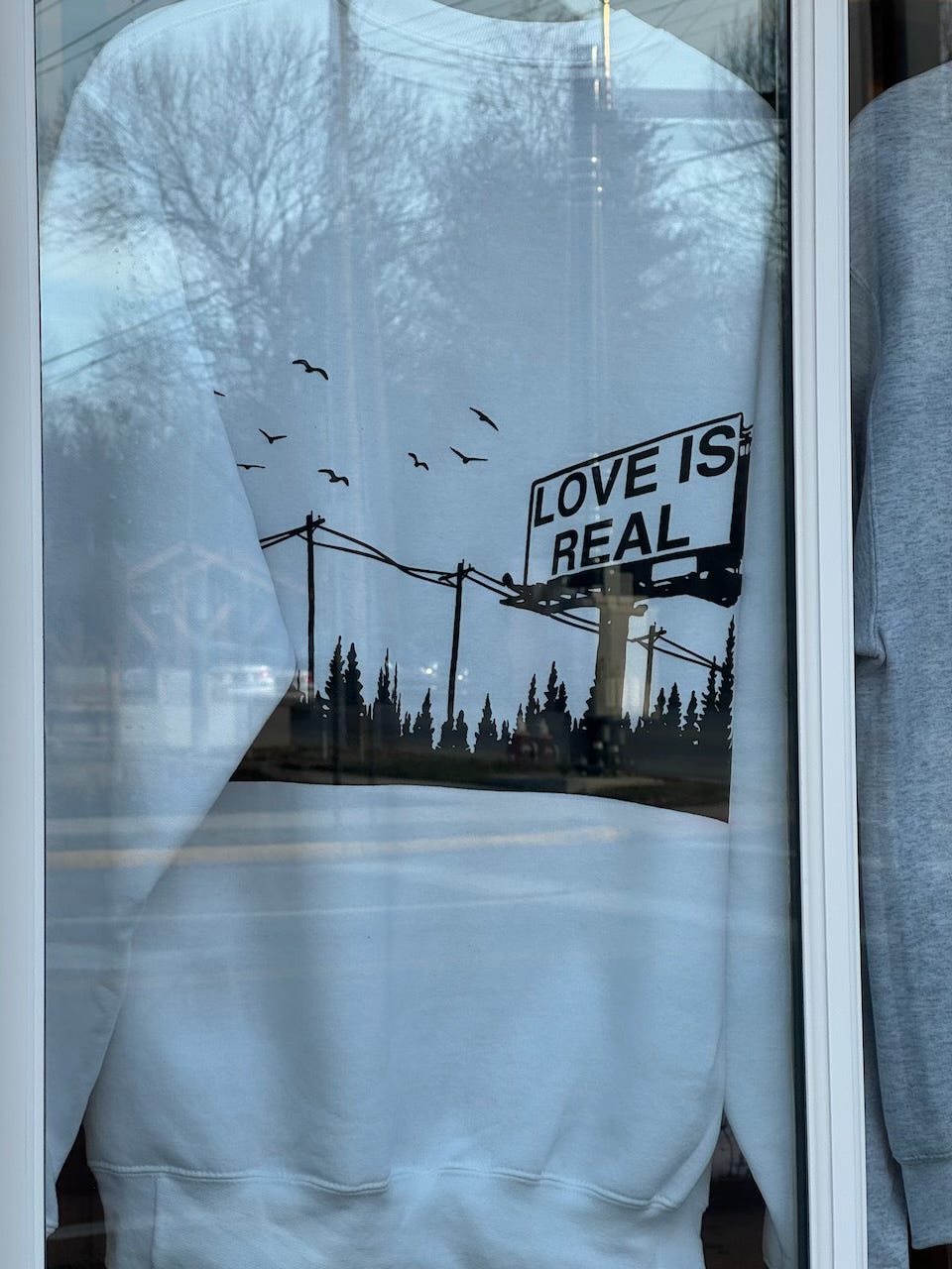 Seeing it in the window was a sudden opening to you/love and I wonder what an actual sign on the interstate would be as people drove... a sudden opening to you/love.