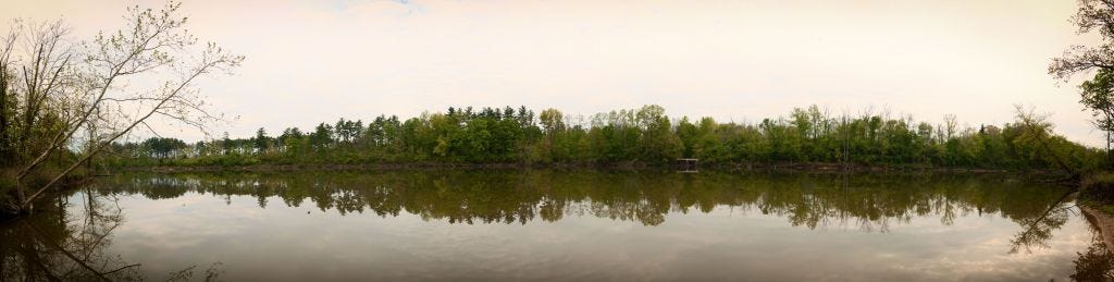 Yesterday, I was so blessed to find a new vista that I had not seen before at a nature center that I have been to probably hundreds of times before. It was walking down a road that I had never walked down before. And I came to this boat ramp and here was the vista. The lake was nearly perfectly still, there were birds flying and landing all around, and the temperature was perfect. Only thing missing was a blue sky but I’ll take it. As I walked down the path toward this, I was listening to The Writers’ Almanac podcast and this was the poem that ended it...