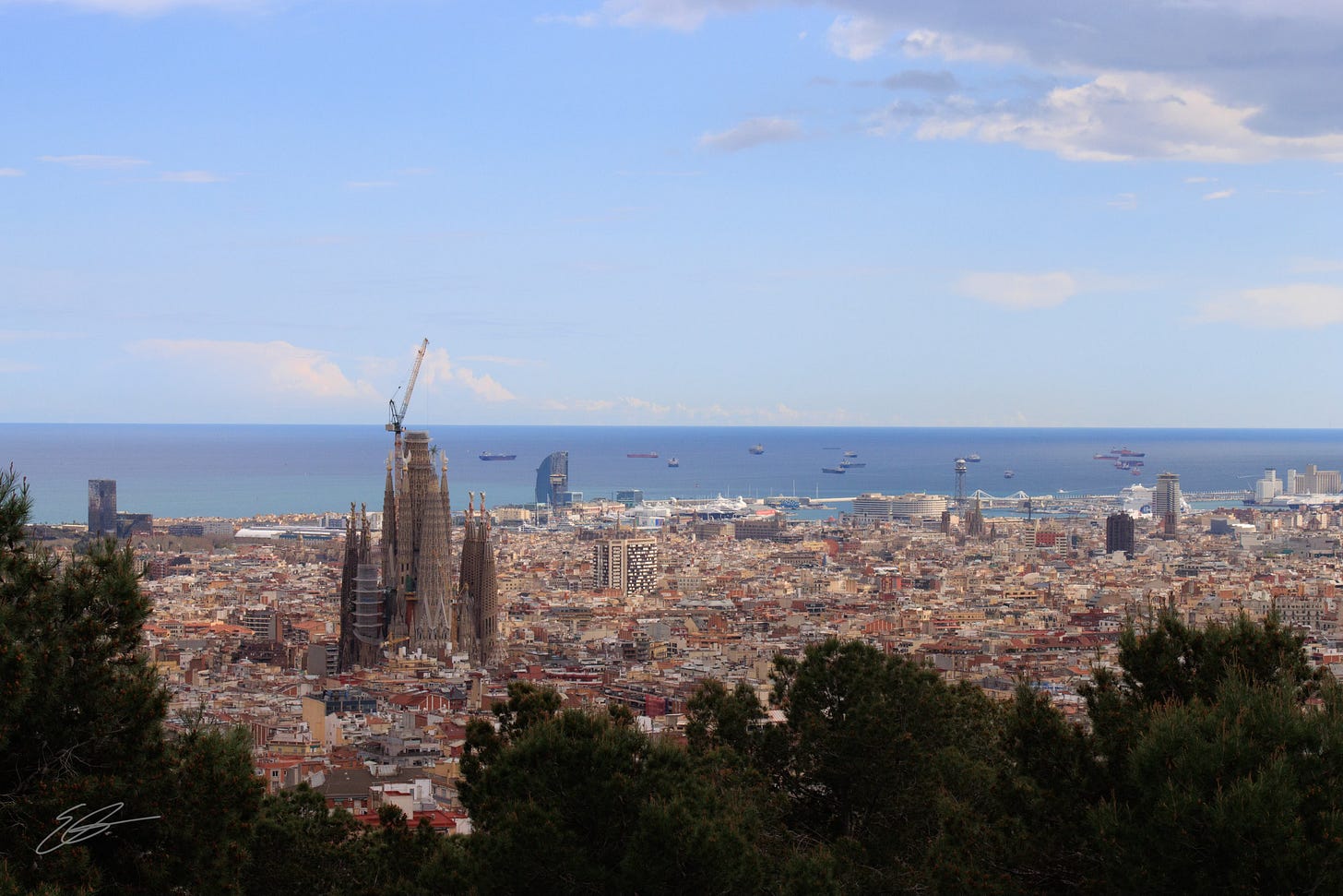 I am a total language geek and I love finding new cool words. My new recent favorite it one that I learned when we were in Spain a few weeks ago. That word is “mirador.” It simply means “lookout” in Spanish but it is used to talk about places with big views around. So when we first arrived in Barcelona, our son introduced us to the term. I fell in love with the word as we hiked up to one of the miradors in Barcelona and I photographed this view of the city and the Mediterranean.