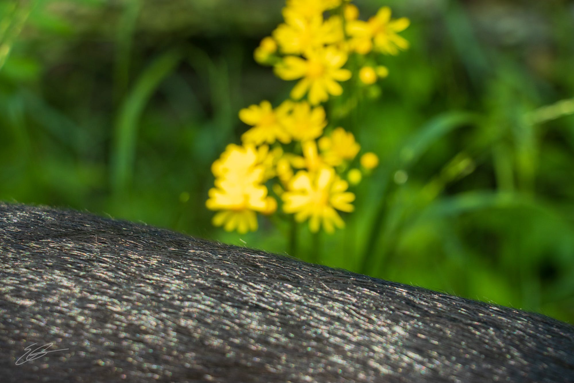 PS - On a lighter note Scout got into the theme a bit today too. This is her back spotlighted by the same sunlight illuminating the bloom behind.