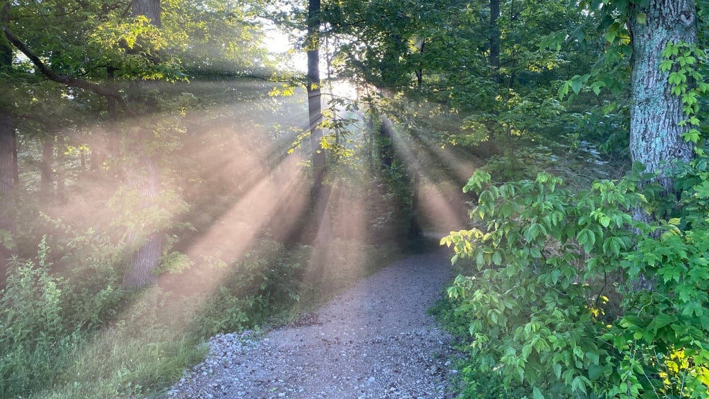 These light rays can give the impression as well that they are where the light is. That because we can see the evidence of the light that the light isn’t in other places. But that’s obviously not the case. It is just how the light got filtered through trees and through the haze. But even outside those rays, the light is still there.