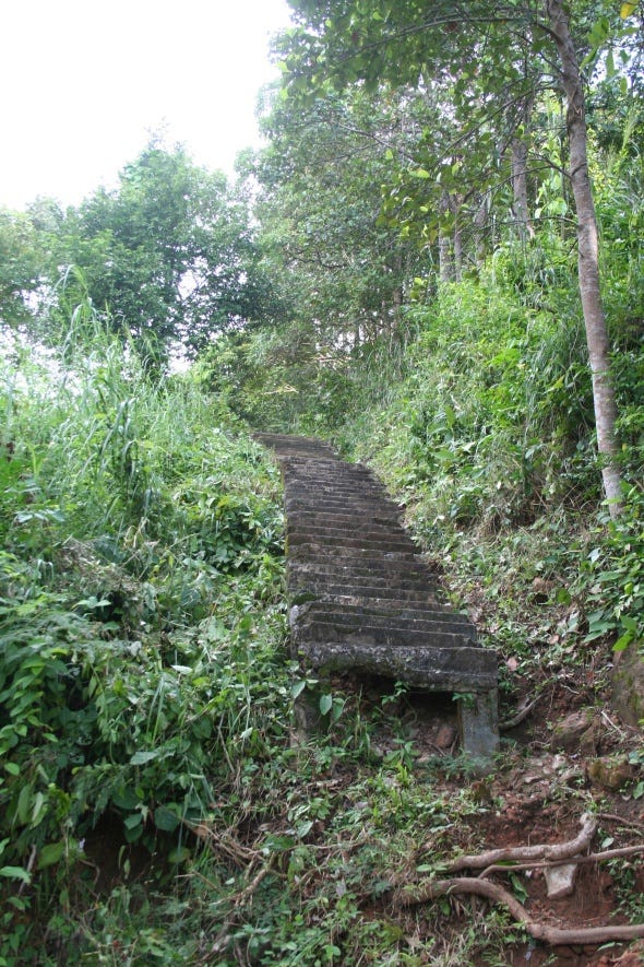 I saw this sign on a hike in Kep, Cambodia in 2011. Honestly, I immediately thought of the Led Zeppelin song at the time. But now, nearly 3 years later, it has a far different meaning. I was wondering about how I could possibly represent "let us go up to the house of the Lord" in a way that wasn't just a picture of a church and I thought of this picture. What this picture does not show is that it pointed to a set of rough stone stairs (pictured below) that led to a wonderful (and very interesting) hiking trail. But the statement "stairway to heaven" is so appropriate because we come to the house of the Lord to have a taste of heaven...to have an experience of the divine...to connect with God, and with one another, so that we can be sent out into the world to serve. When I am a part of planning and leading a worship service (along with praying for it throughout), my deepest desire is that people have an experience of God in a tangible and life-changing way in that time. However that happens is not up to me, but to the moving of God's Spirit, but that is what I hope and desire.