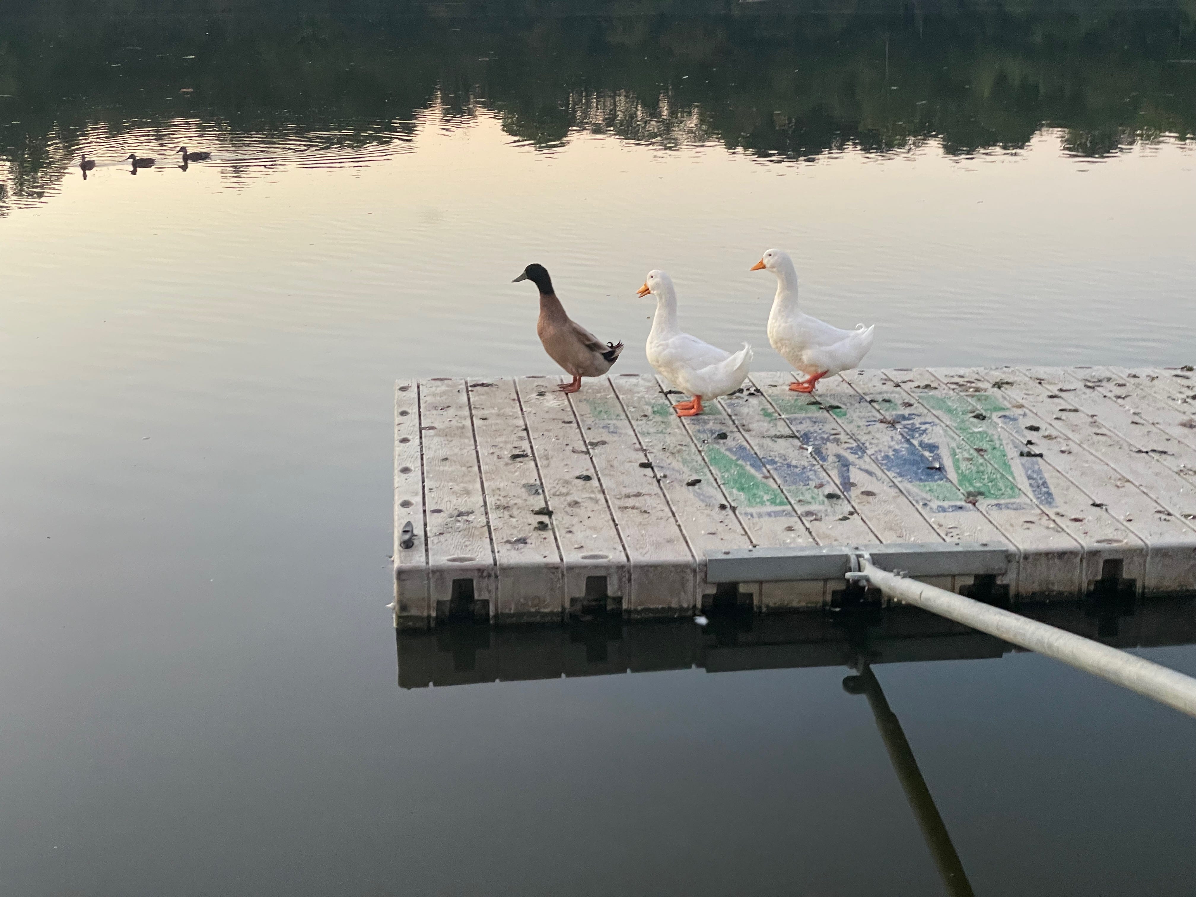 Then yesterday morning during my walk with Scout I saw several deer, a bunch of rabbits, geese, squirrels, dogs, fish, a turtle, bugs, birds, some humans and then this trio of ducks (who always seem to be together).