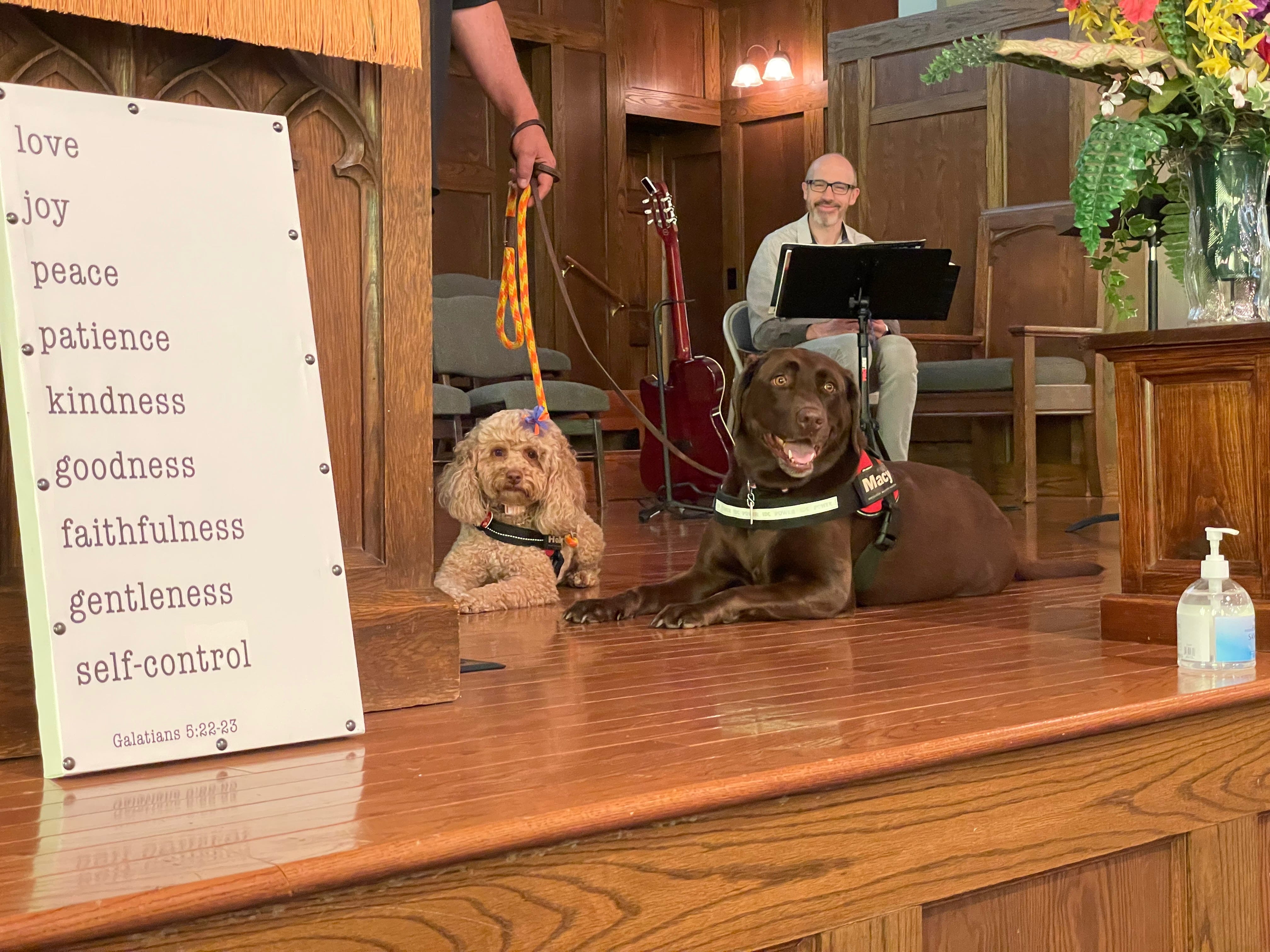 And finally...a big part of my “Fruit of the Spirit” sermon on kindness yesterday morning was centered around the kindness of animals (dogs in particular) and we also were blessed to have two of our members and their therapy dogs sharing about their ministry with their dogs. I shared, of course, a good bit about Scout but we also had a montage of animals important to folks in our congregation (dogs, cats, a deer, and a turkey too!).
