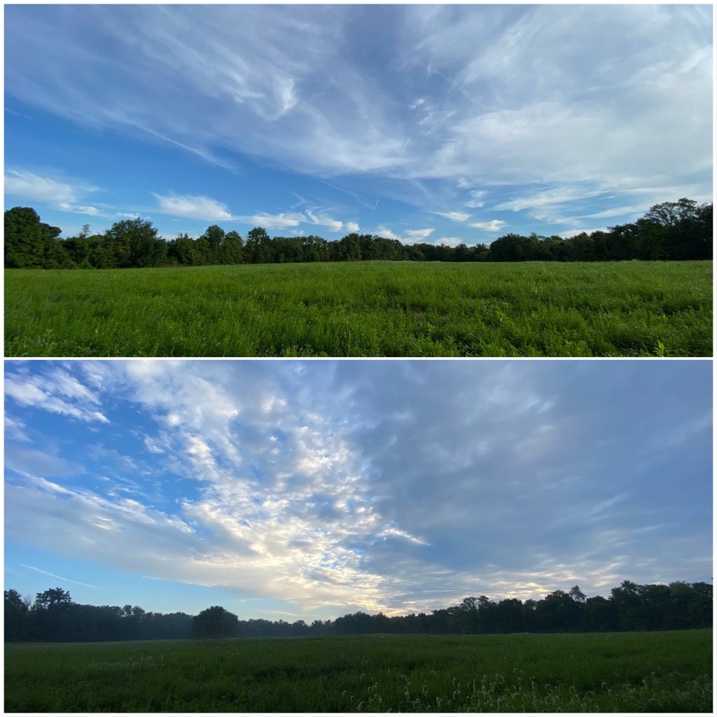 Gotta say that I'm a big fan of symmetry. The last few days have felt full of it. I started reading the Psalms the day before the last wedding I did back in March - just as the shutdowns were beginning. I finished the Psalms yesterday - the day before the wedding I am leading tonight. I began the read thru just as schools moved online and ended the day after our kids had orientation for their new and very different year ahead. My first in-depth read of the Psalms was when I was going through a period of intuse personal challenges. I was led to again read them in the midst of a time of intense global and national challenges. Yesterday, a morning walk at Long Branch and another today, taking in the sky from the same spot.