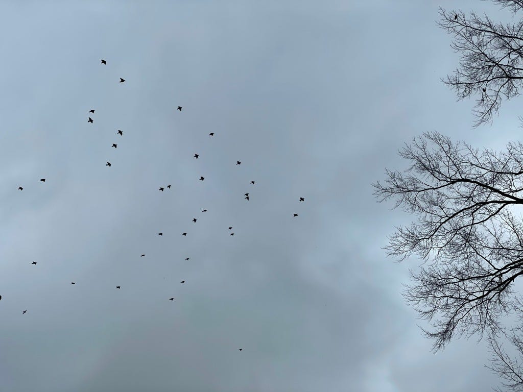 On my walk yesterday morning, I was the only one out and I was trying to be tuned in to the sounds around me - the little clicks from Scout's claws on the path, the distant sounds of cars on the nearby road, the soles of my shoes as I walked, and my own breath. But what I heard most of all came from the chorus of birds in the trees - especially those that sounded like they were calling to one another and going back and forth. I obviously don't know what was being communicated, of course, but it sure felt like they were having some kind of conversation. One nearby would speak and a reply would come from some distance away. I stopped for a few minutes to simply listen in stillness to what was stirring all around.