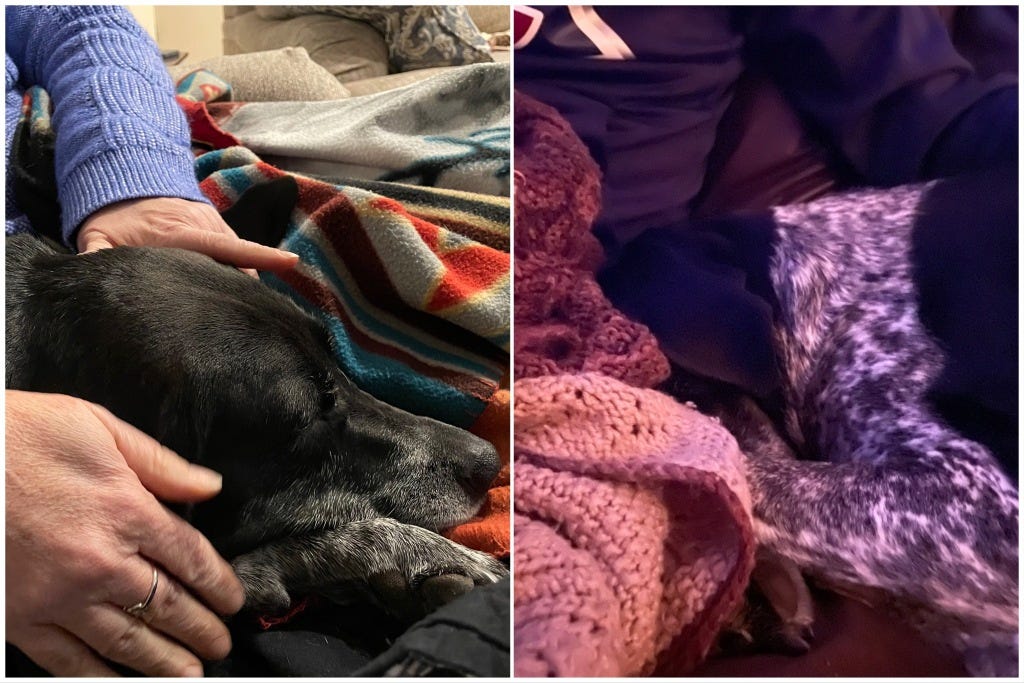 Scout will be my model for likely a lot of photos in this journey and she was last night and again this morning. She is a very cuddly dog. She loves to get close to us when we are on the couch and she has a way of seemingly continuing to push closer and closer. She definitely knows how to be cozy. Last night she cozied with my wife as we watched a zoom video of an honor one of our sons was receiving. So she was cuddling in the midst of a celebration. This morning, she found me after I made the mistake of reading emails and checking the news before I did my meditation time and fell into the trap of “doom scrolling.” She jumped up and curled right up next to me. She recognized what I was needing and she met me in that weighty space I was feeling this morning.
