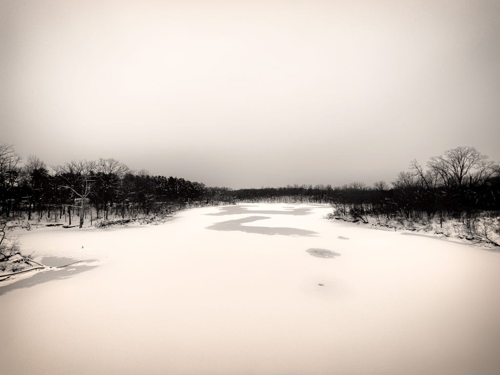 When I took this photo a few days ago, it was maybe 15 degrees, Scout and I were the only ones out, and the only sounds we were hearing were the crunch of our feet on the snow, the chattering of birds, and the occasional gust of wind. Each also brought a physical sensation - the extra effort of a foot walking in day-old snow, the turning to try to find the unseen birds, and the tensing up from the additional cold from the gusts. All of it coming out of an awareness of the little wilderness space we were in.