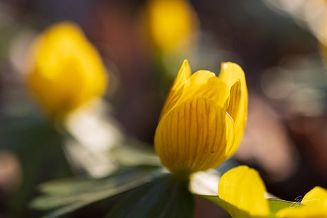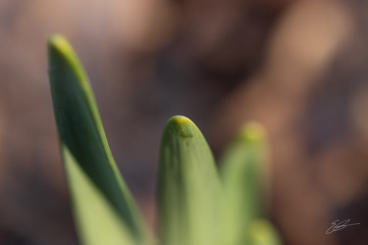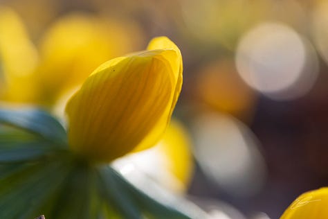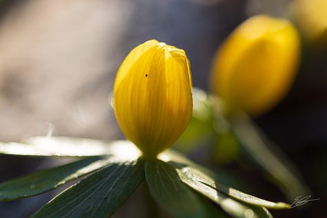 This early-not-quite-yet-Spring bloom is one of so many tiny yellow blooms I saw all around Rowe Woods on Saturday morning. But this one looked to me like two hands coming together in prayer but the way that I photographed it with the super-shallow depth-of-field gives it an unsettled and (literal and figurative) unfocusedness. It feels to me like the prayer of one who feels the knots within and without and yet continues to bring the hands together in hope and in trust for something, somehow, some way.