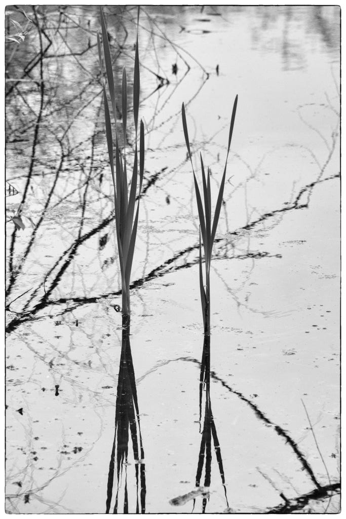 Right now, I feel that God is working on me about the space between speaking and listening and working on cultivating a deeper sense of silence and stillness. I read those lines above a few mornings ago and they were still with me as I came to a little still-water pond. Later in the summer, this pond will be covered by blooming lily pads but for now it was just still water on a cool morning. As I approached, I was hearing the croaking of frogs and a few splashes of fish surfacing. I heard the breeze blowing through the early summer leaves. There was the gentle sound of my footsteps on the dewy ground and Scout trying to chomp as some of the long grasses alongside the path. When I stopped at the edge, I could almost imagine (or maybe it wasn’t imagined) hearing my own heartbeat.
