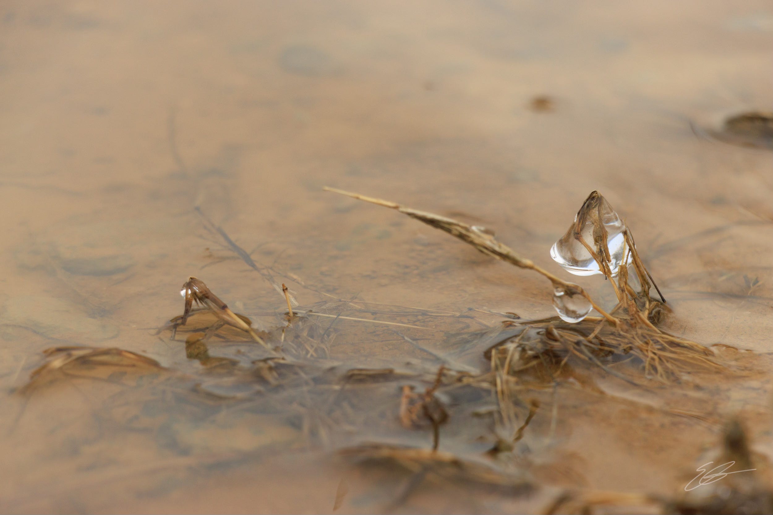 I was originally going to just do a walk with Scout around our neighborhood but I felt like I needed to be near trees and water. So we did a path near us that is unpaved and weaves through a lovely wooded area and then there’s a path down to another part of Winton Lake. As we were on the path, I saw this one green leaf still hanging on (or recently emerged) in the midst of the snowy cold of the morning. And then when we got to the water, I spoke aloud my apologies to the water about the ways that we have treated her and I saw this one tiny piece of ice holding on from the recent melting. At first I thought it looked like a hershey’s kiss but I can also see it as a mournful tear.