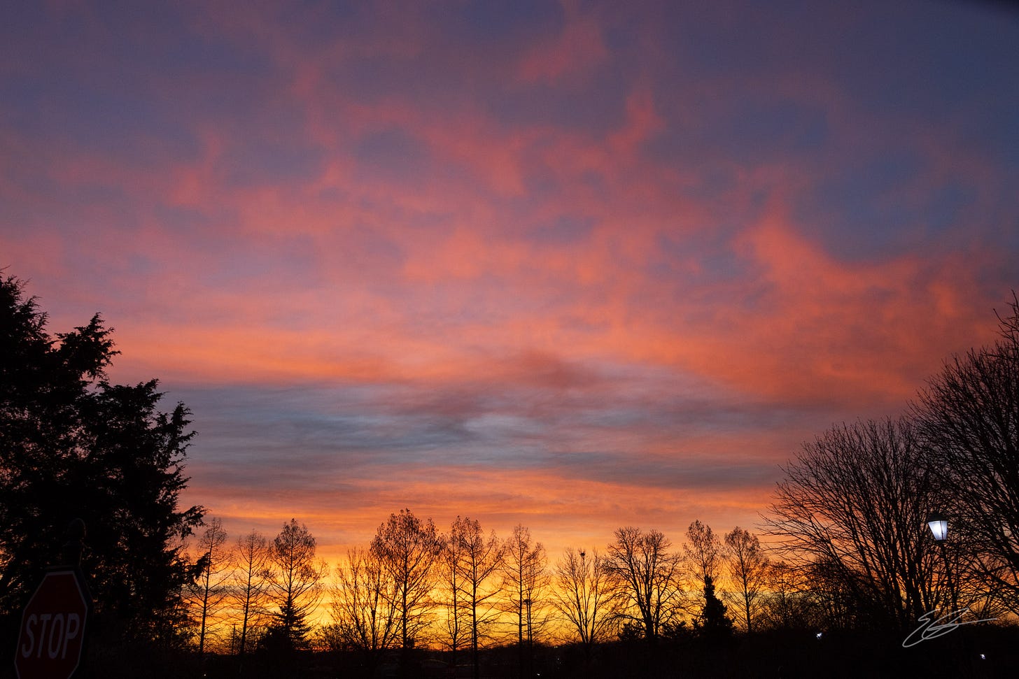 The sunrise on Tuesday morning here was simply stunning. But it was when I got out of the car and was walking around to the other side to get Scout out that I saw the message.