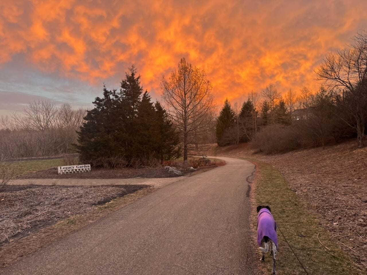 A few more pics - from the time at the retreat and then the sunrise from Tuesday morning, including Scout looking like she’s leading me into Mordor...